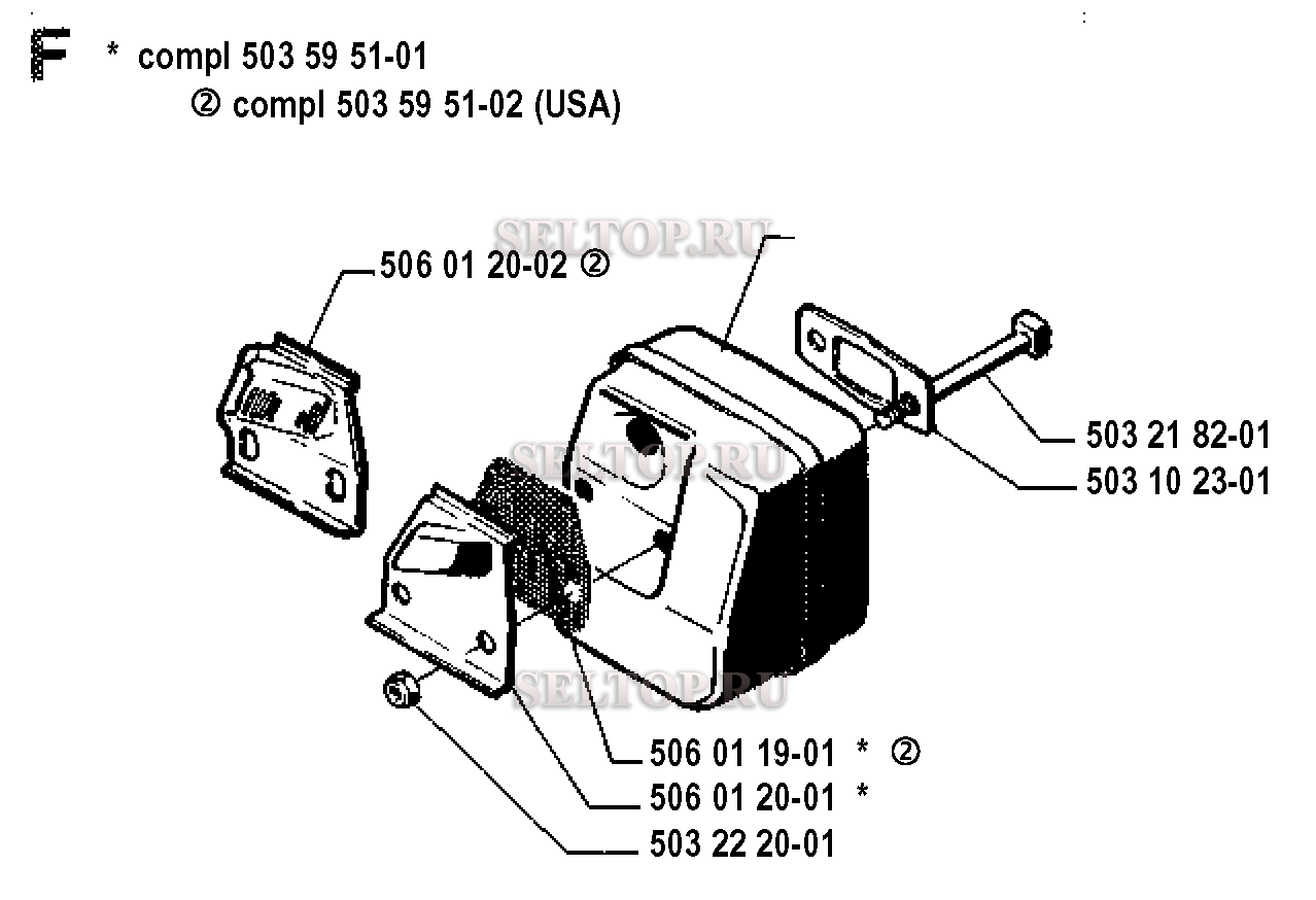 Глушитель для бензопилы Husqvarna 45 (с 1990-06), взрыв-схема: