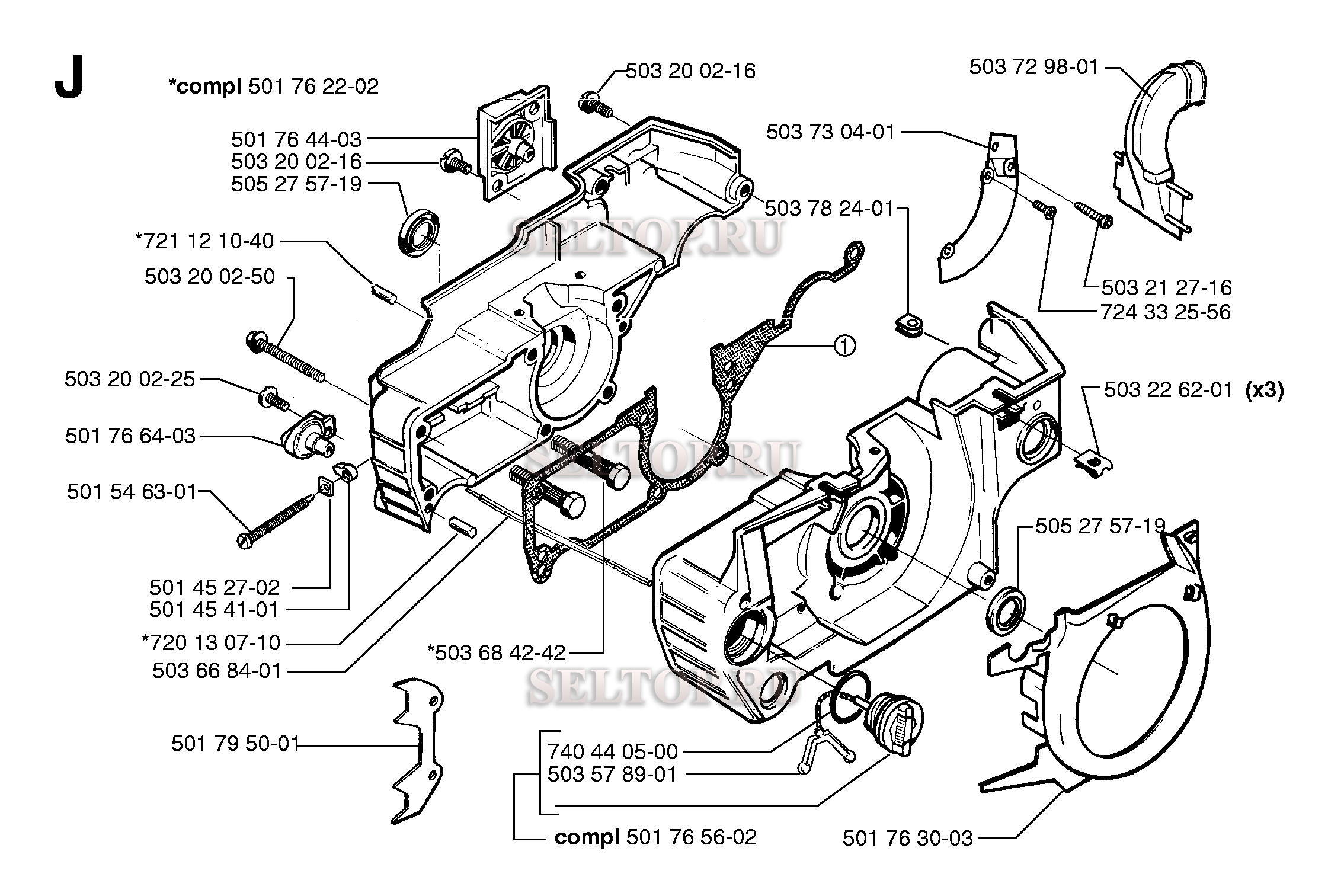 Картер для бензопилы Husqvarna 51 EPA (с 2000-05), взрыв-схема: