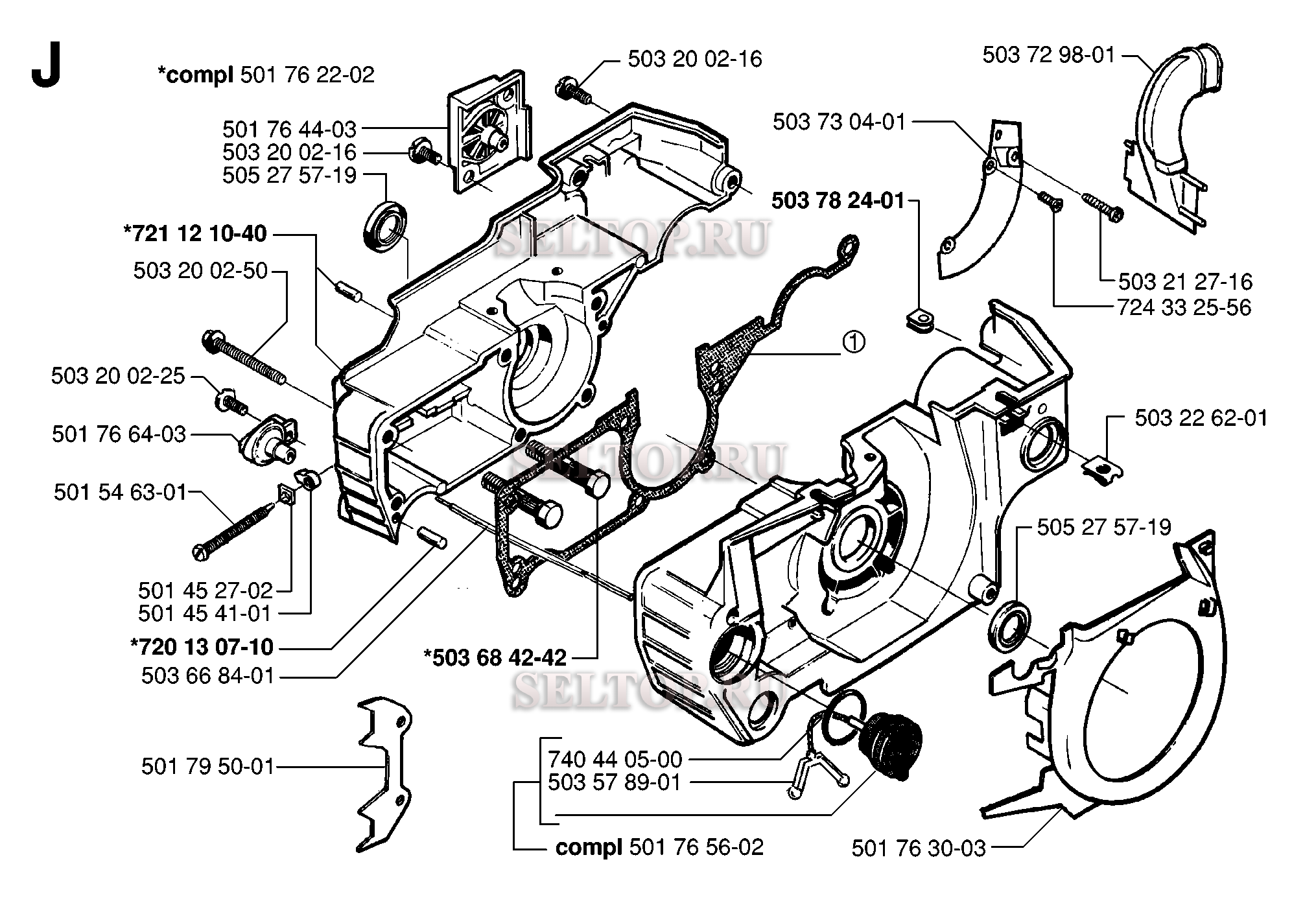 Картер для бензопилы Husqvarna 55 RANCHER EPA (с 1998-08), взрыв-схема: