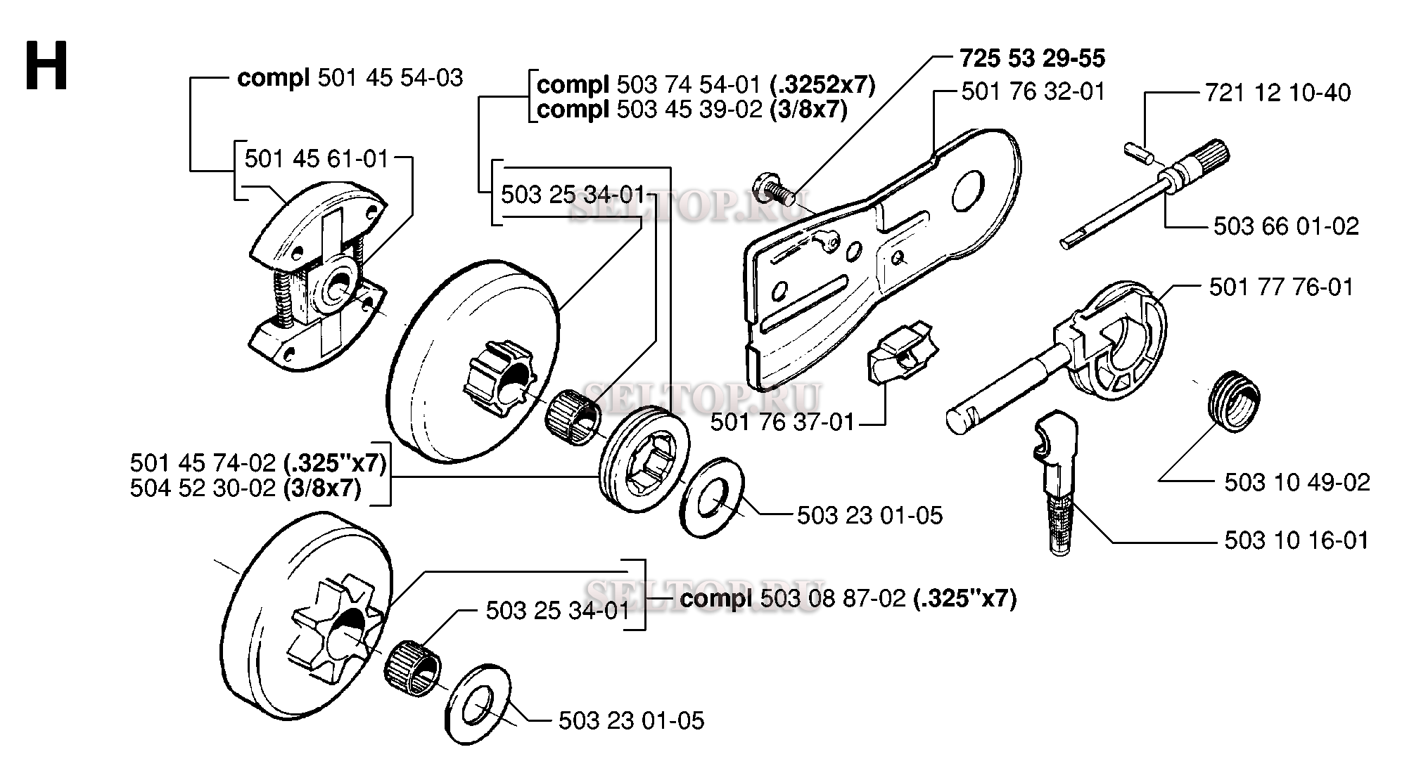 Сцепление, масляный насос для бензопилы Husqvarna 55 RANCHER EPA (с 1998-08)
