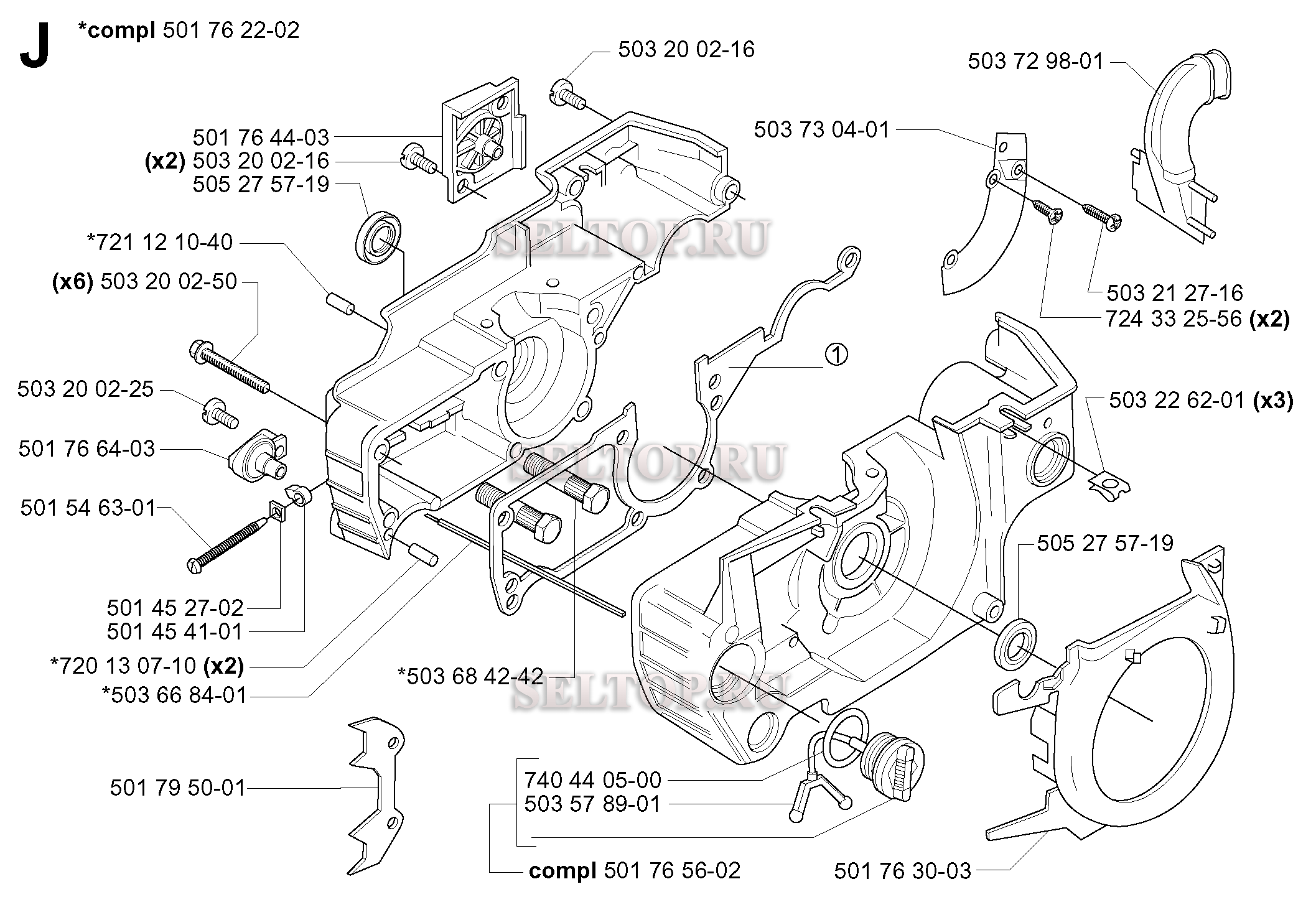 Картер для бензопилы Husqvarna 55 RANCHER EPA (с 2005-04), взрыв-схема: