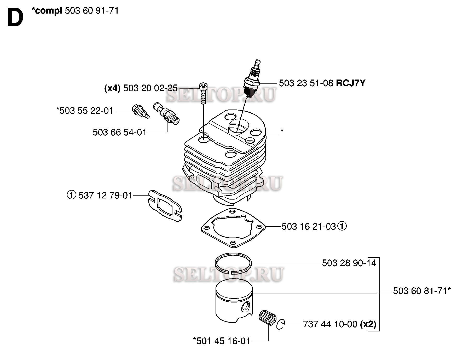 Поршень, цилиндр для бензопилы Husqvarna 55 RANCHER EPA (с 2006-02)