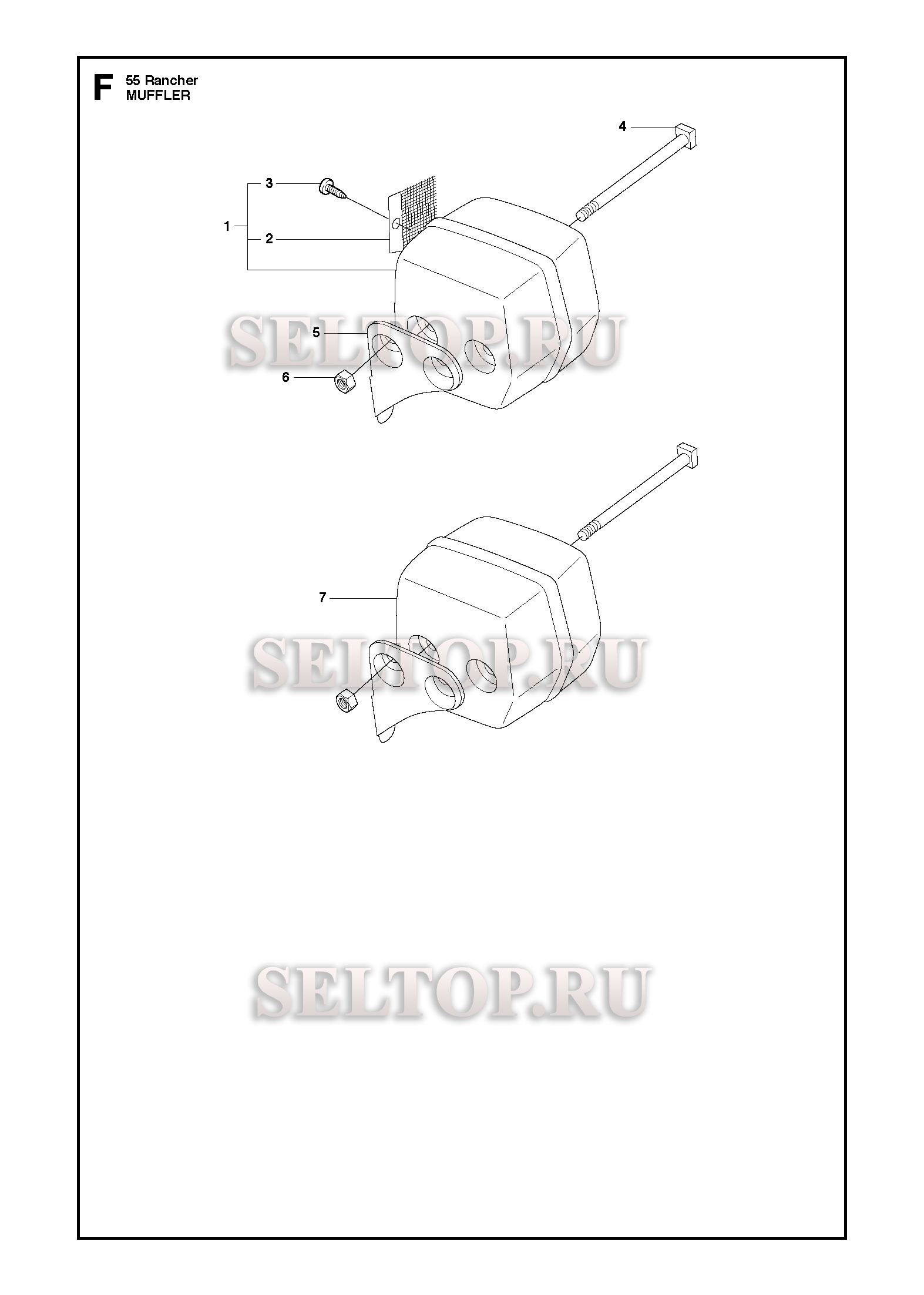 Глушитель для бензопилы Husqvarna 55 RANCHER (с 2010-04), взрыв-схема: