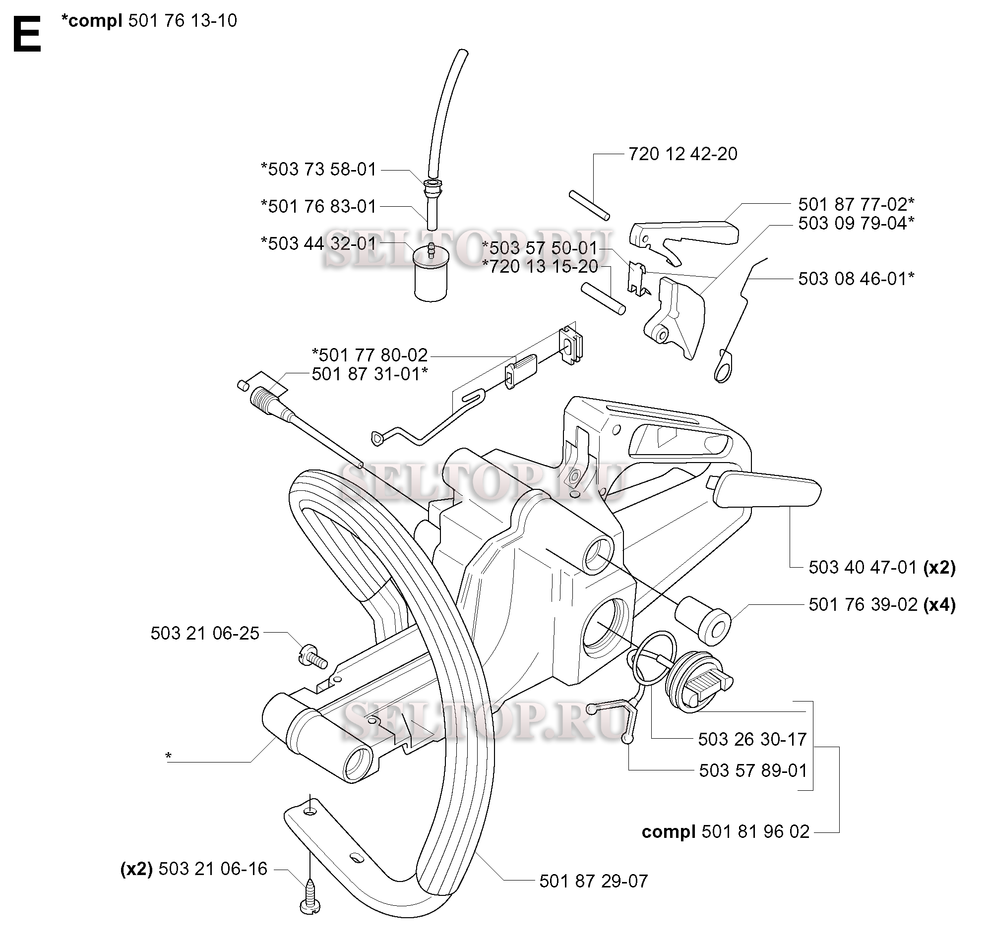 Топливный бак, ручка для бензопилы Husqvarna 55 (с 2005-04), взрыв-схема: