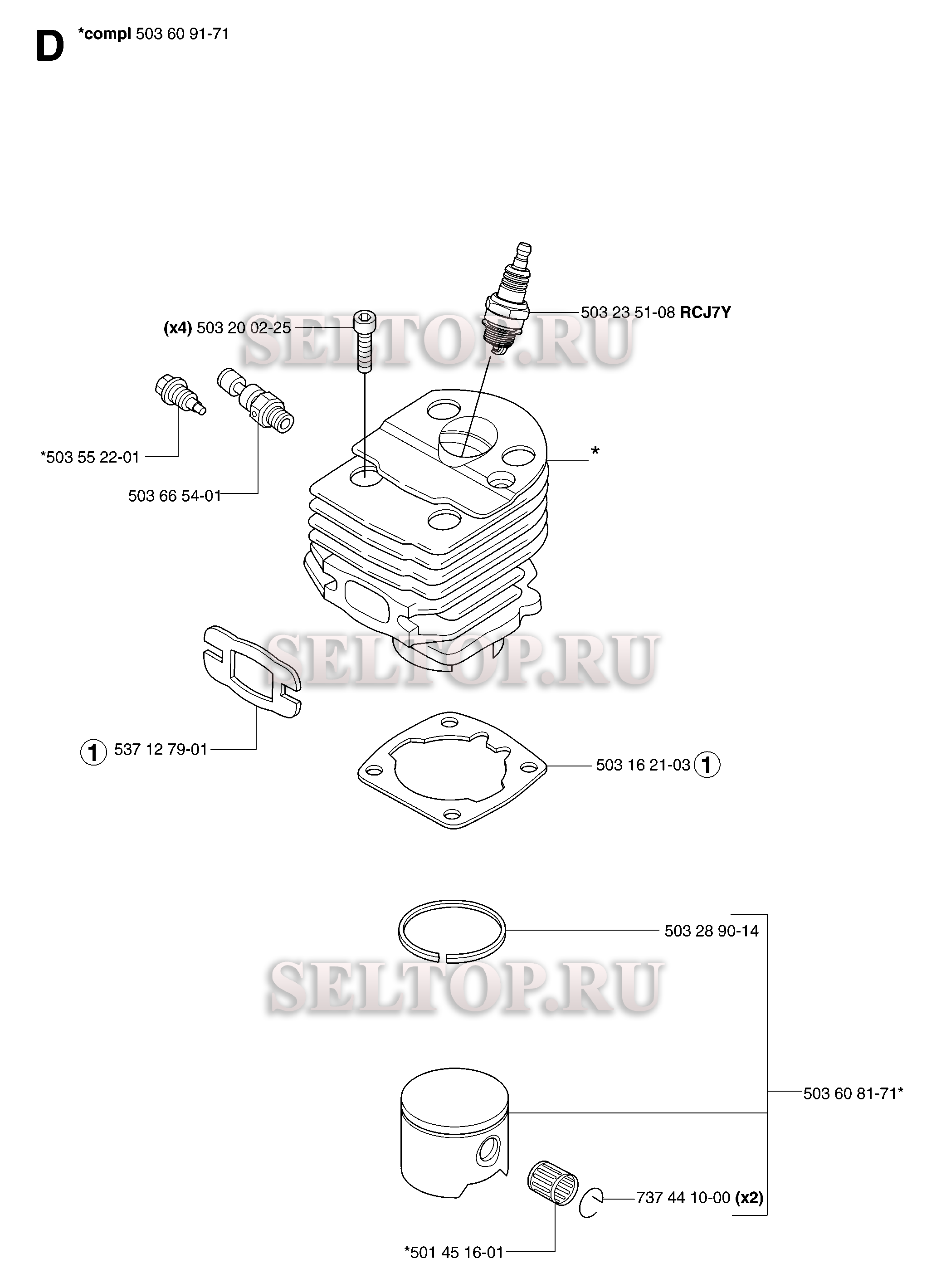 Поршень, цилиндр для бензопилы Husqvarna 55 (с 2007-02)