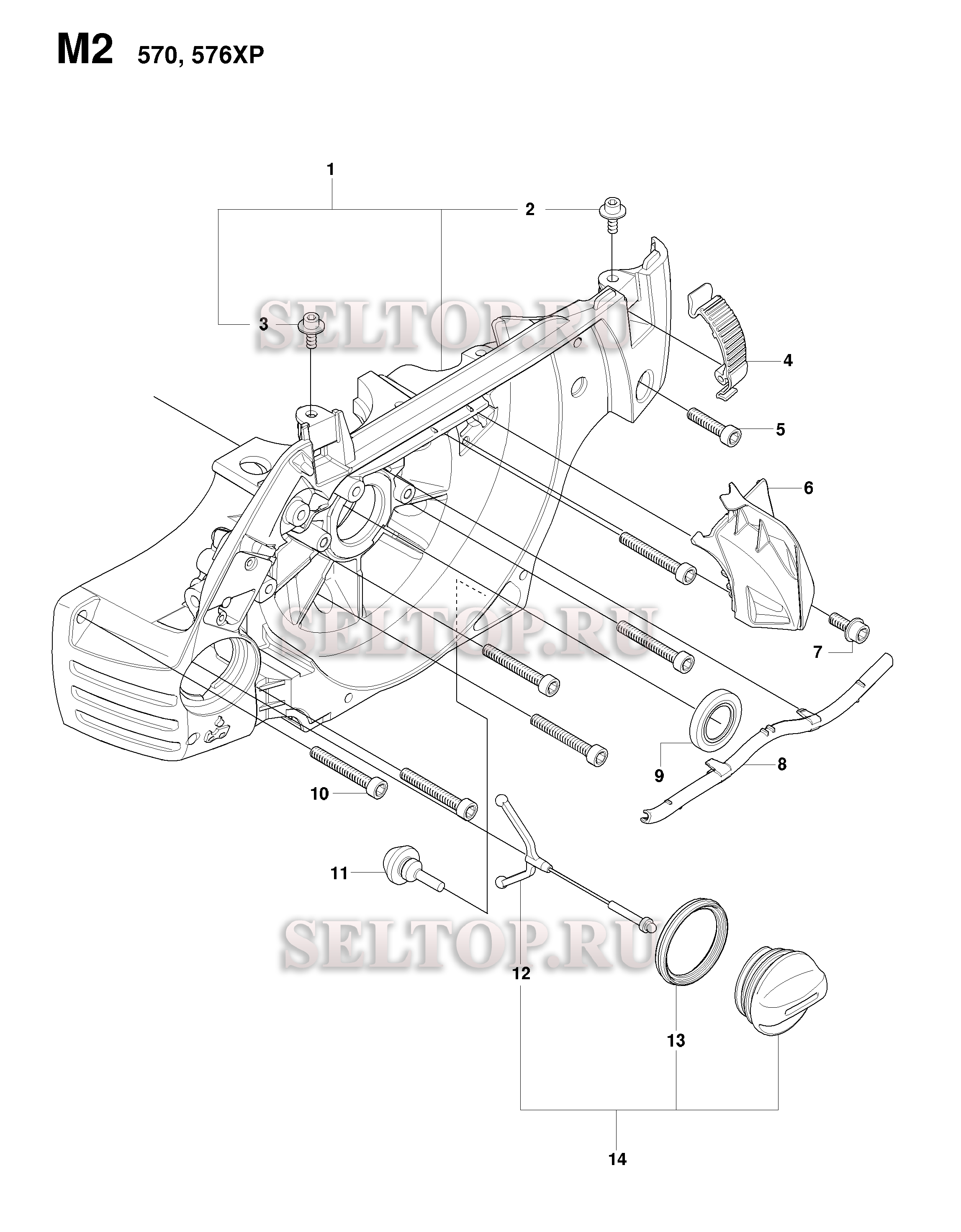 Картер для бензопилы Husqvarna 570, 570 EPA (с 2008-08), взрыв-схема: