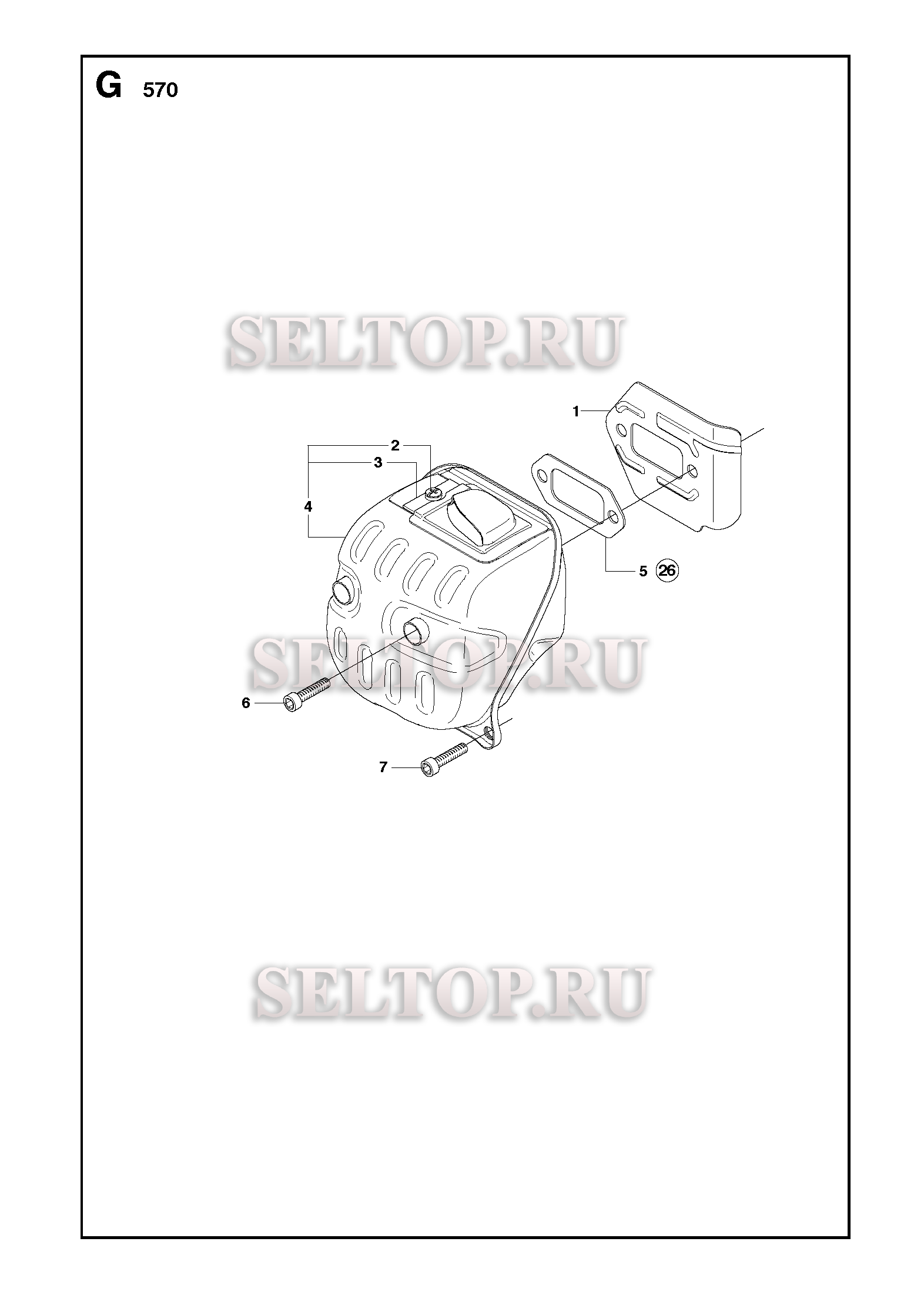 Глушитель для бензопилы Husqvarna 570, 570 EPA (с 2009-01), взрыв-схема: