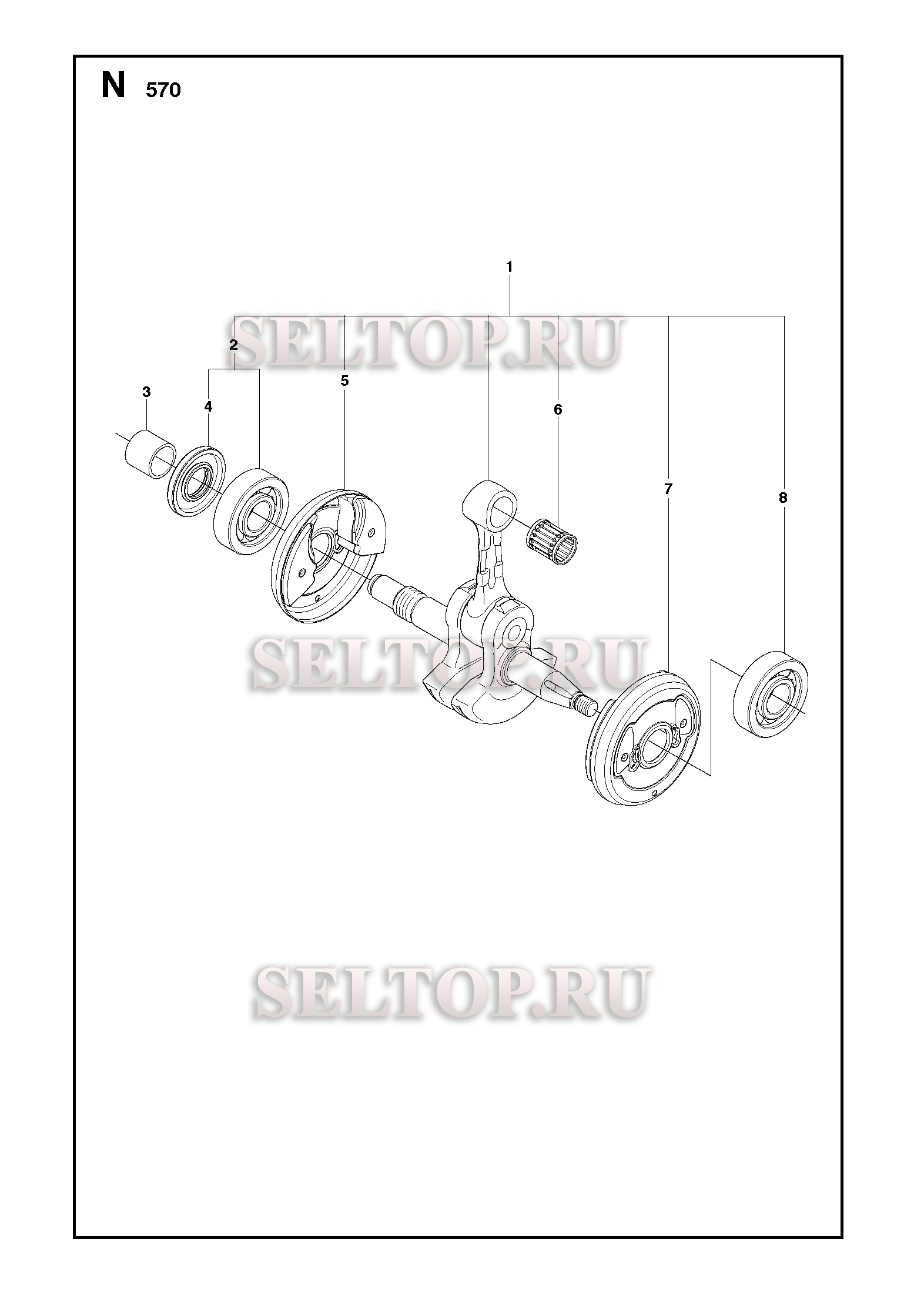 Коленвал для бензопилы Husqvarna 570, 570 EPA (с 2009-01), взрыв-схема: