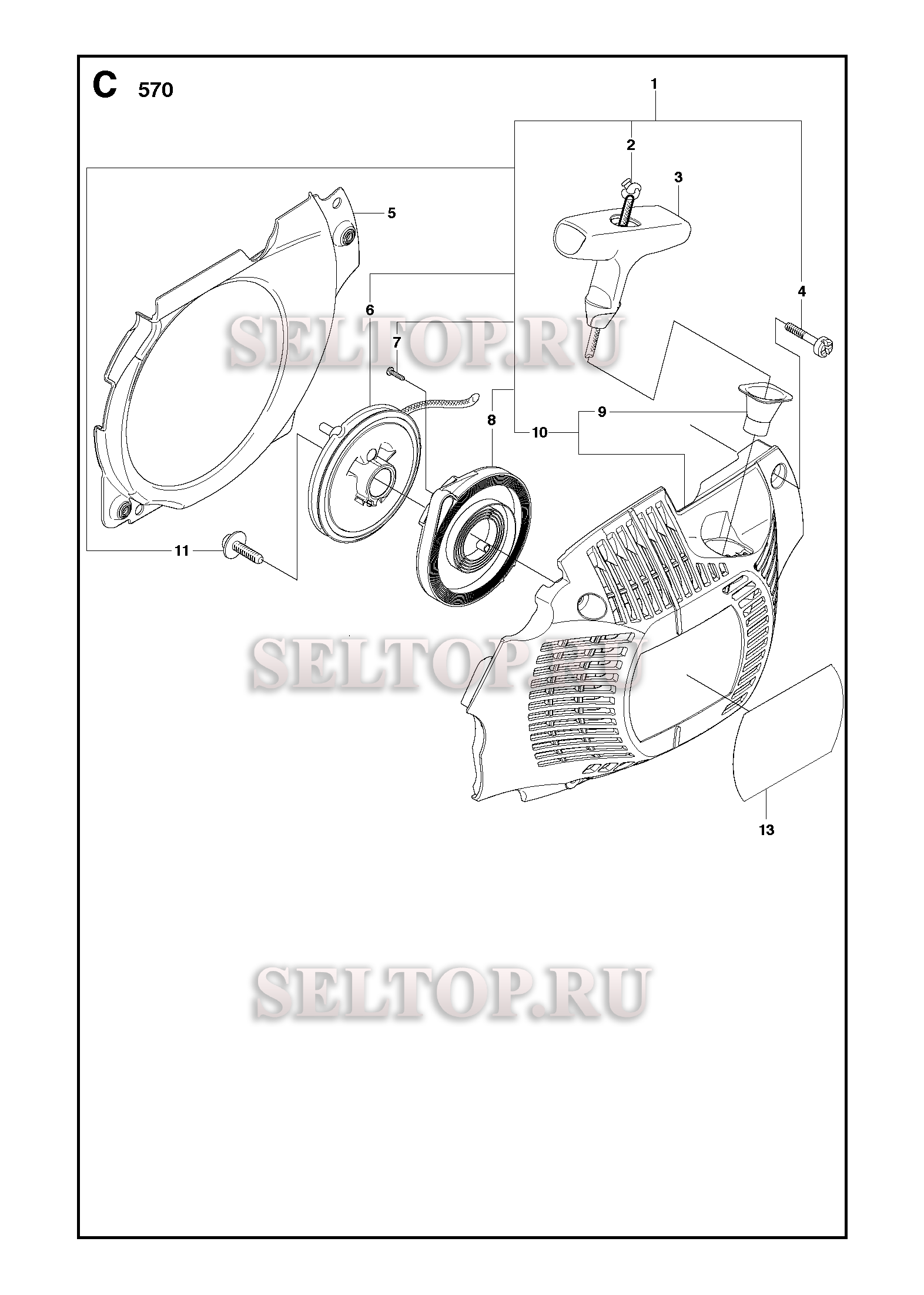 Стартер для бензопилы Husqvarna 570, 570 EPA (с 2009-01)