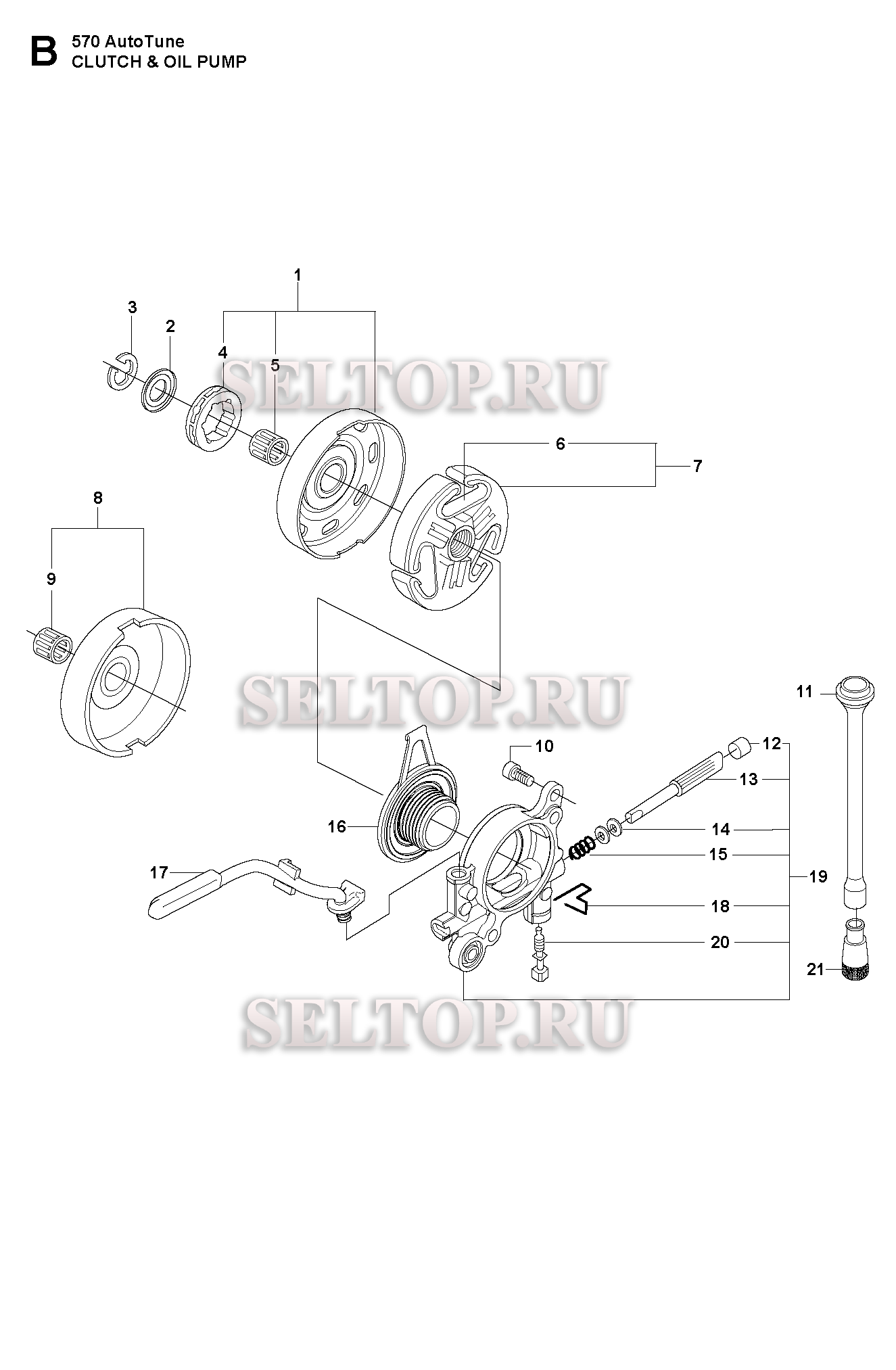 Сцепление, масляный насос для бензопилы Husqvarna 570 AutoTune (с 2013-03)