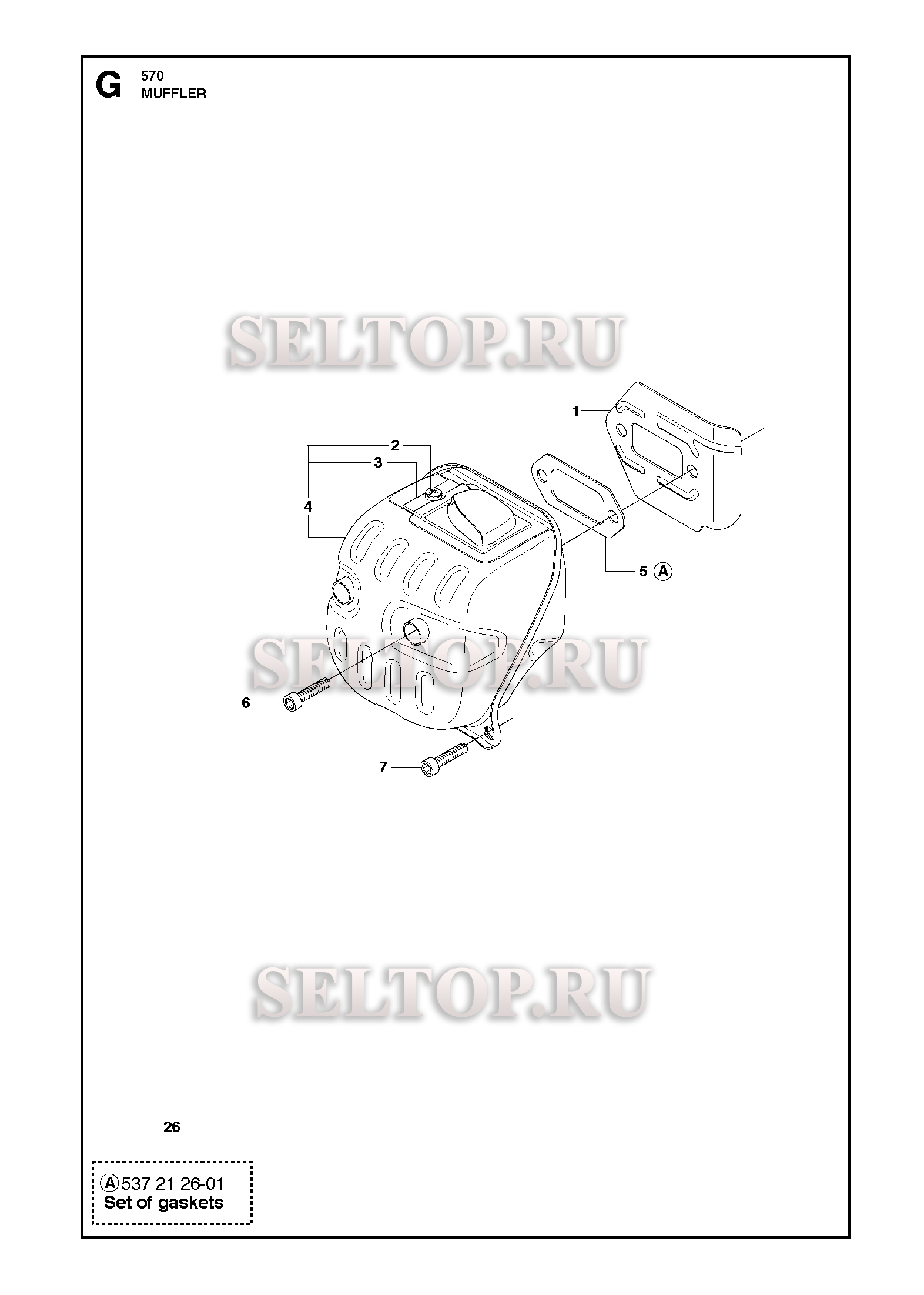 Глушитель для бензопилы Husqvarna 570 (с 2011-01), взрыв-схема: