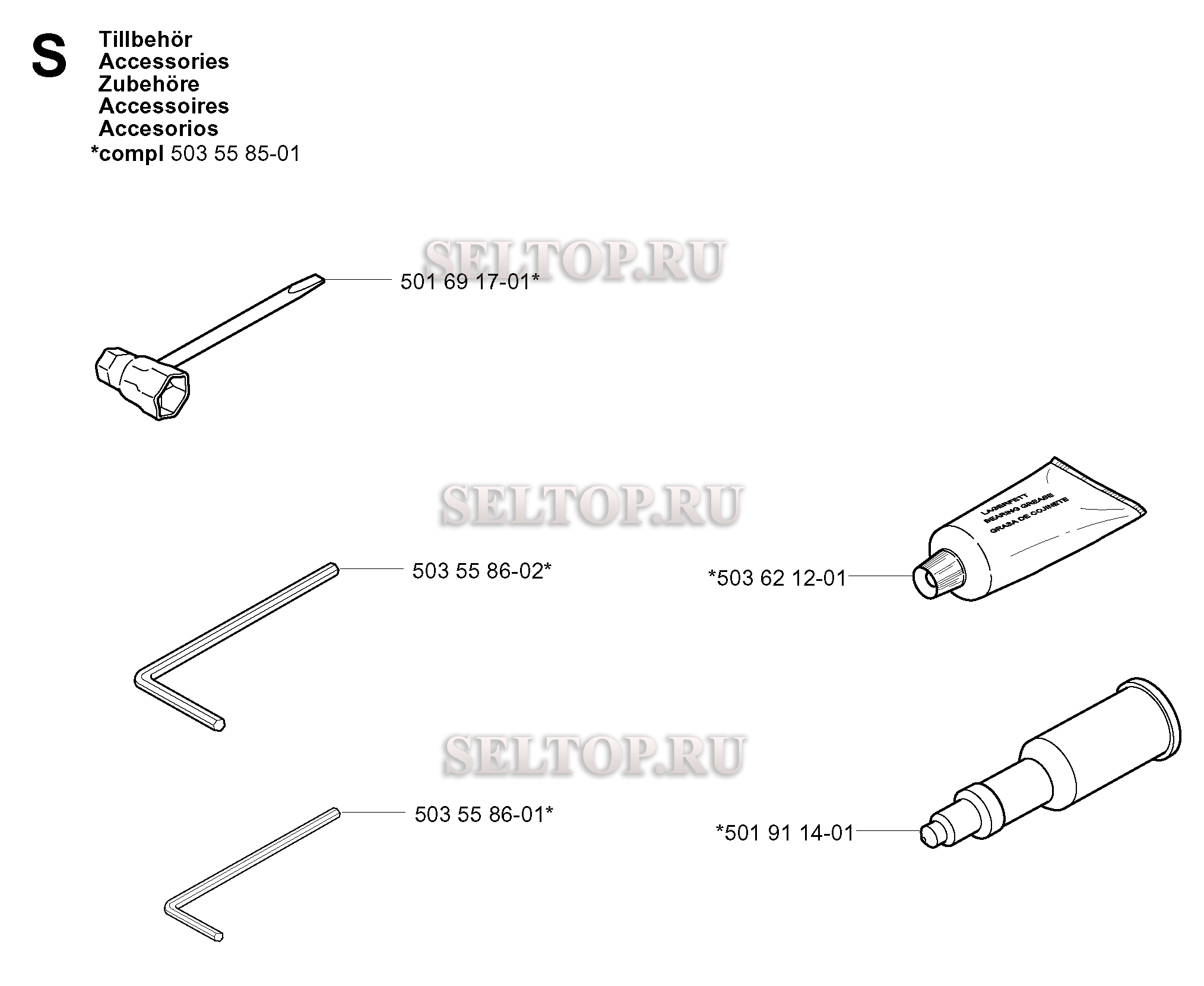 Аксессуары для бензопилы Husqvarna 575 XP EPA (с 2005-04), взрыв-схема: