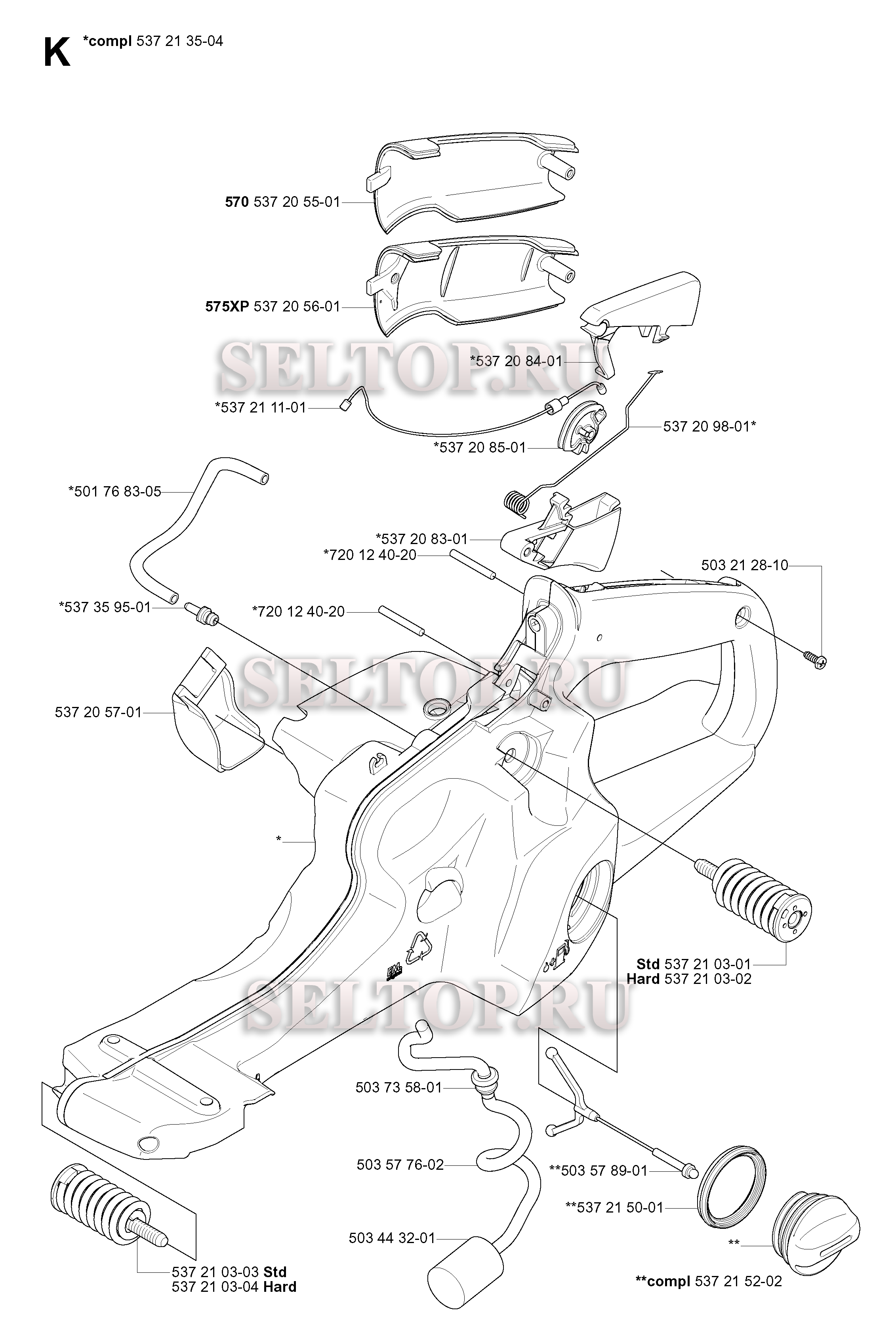 Топливный бак для бензопилы Husqvarna 575 XP EPA (с 2005-04), взрыв-схема: