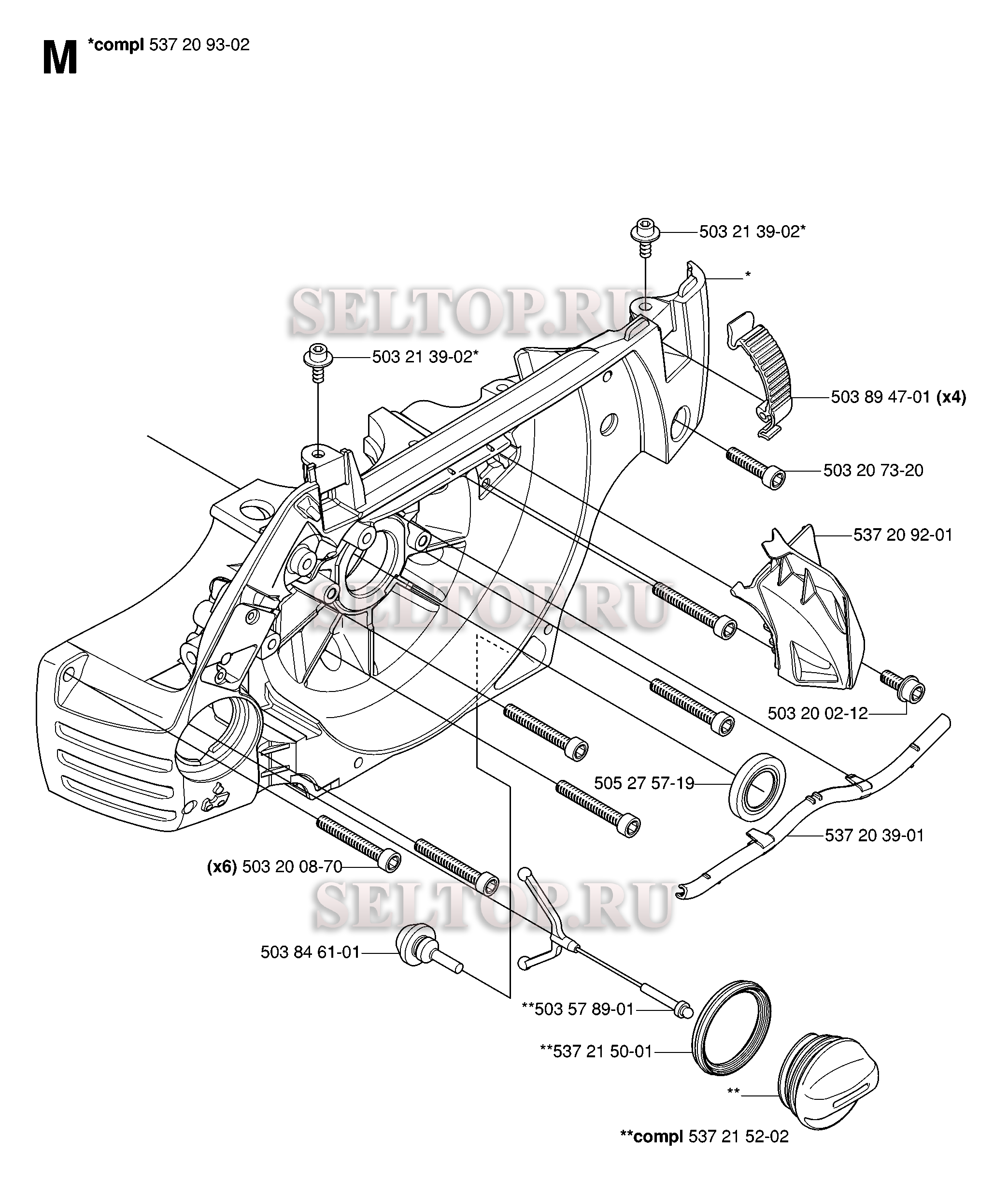 Картер для бензопилы Husqvarna 575 XP (с 2007-01), взрыв-схема: