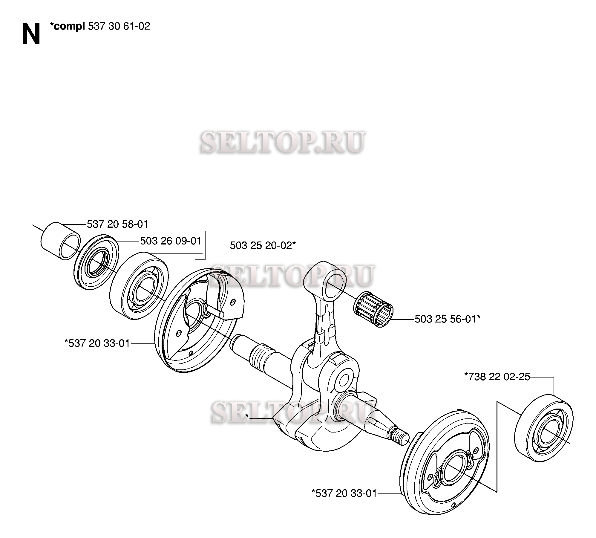 Коленвал для бензопилы Husqvarna 575 XP (с 2007-01), взрыв-схема:
