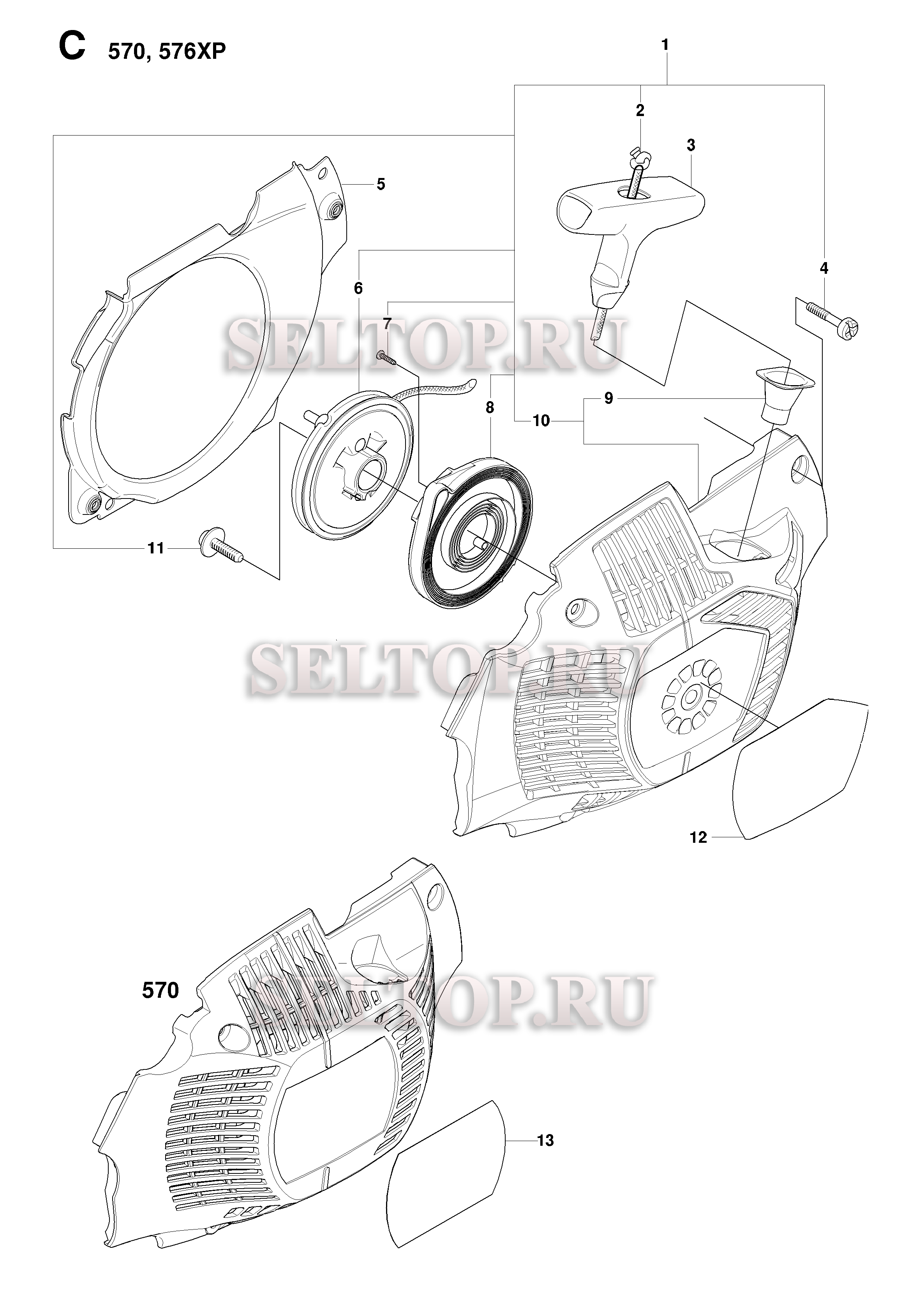 Стартер для бензопилы Husqvarna 576 XP, 576 XP EPA (с 2008-08)