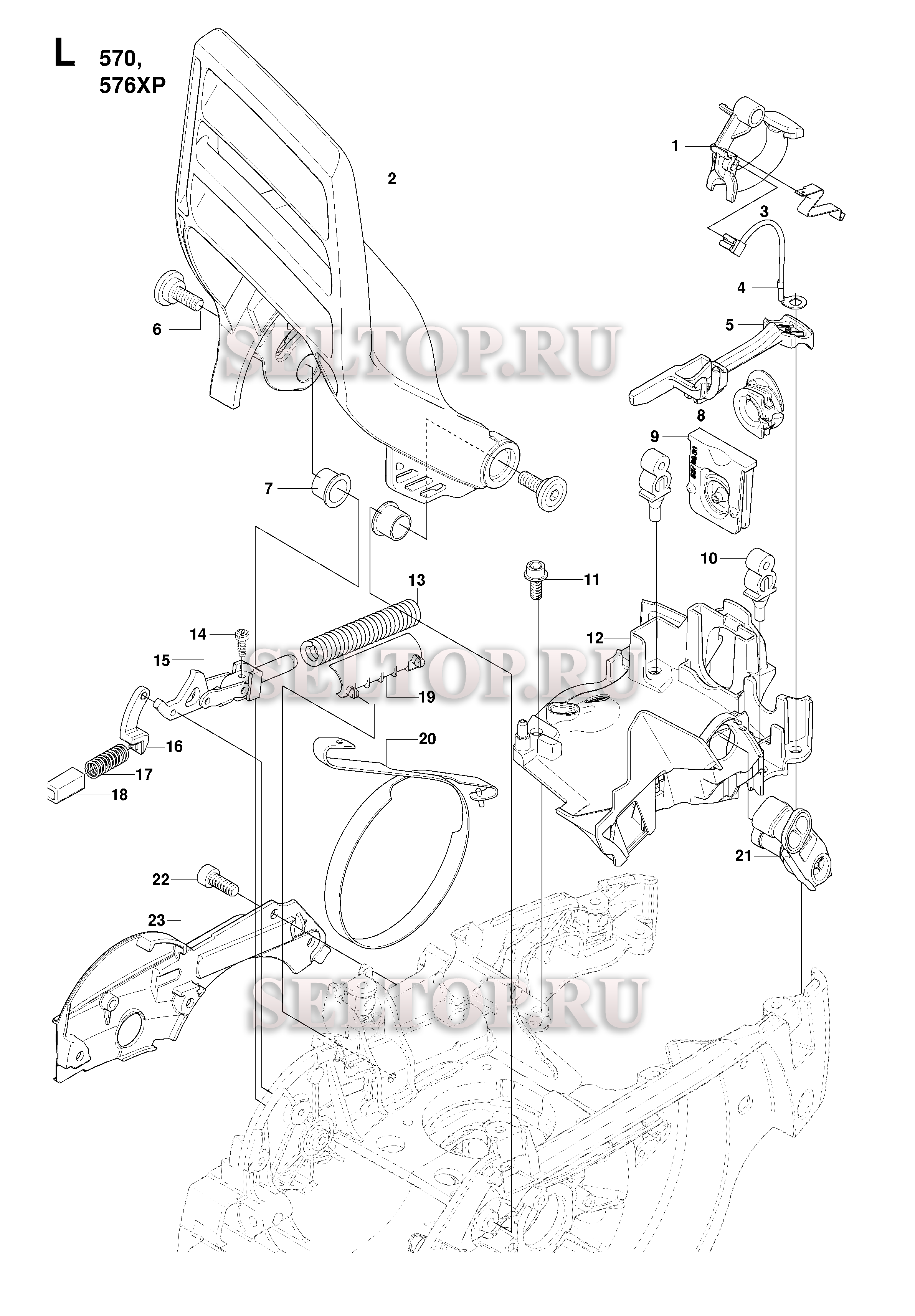 Тормоз цепи для бензопилы Husqvarna 576 XP, 576 XP EPA (с 2008-08), взрыв-схема: