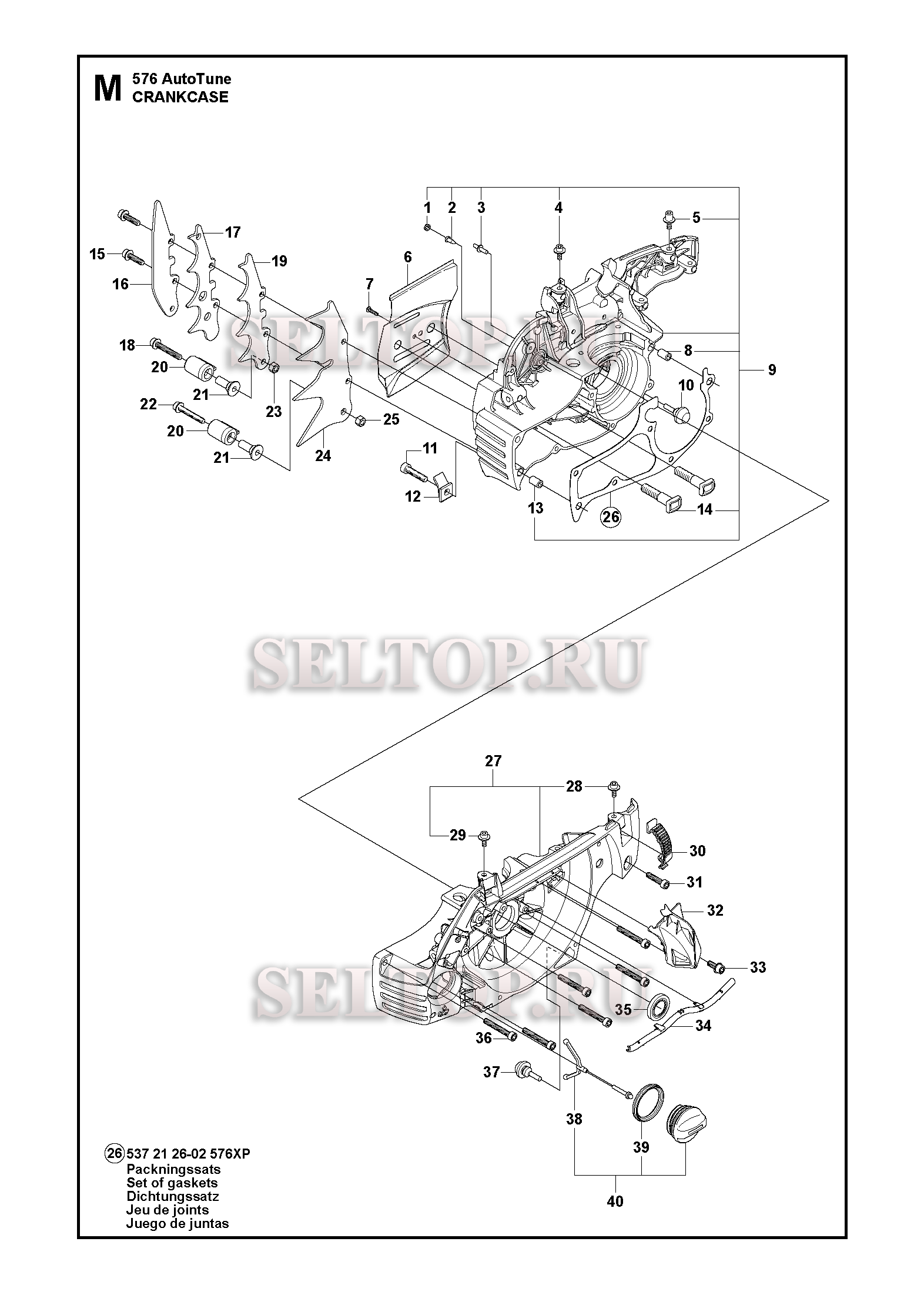 Картер для бензопилы Husqvarna 576 XP AUTOTUNE (с 2013-03), взрыв-схема: