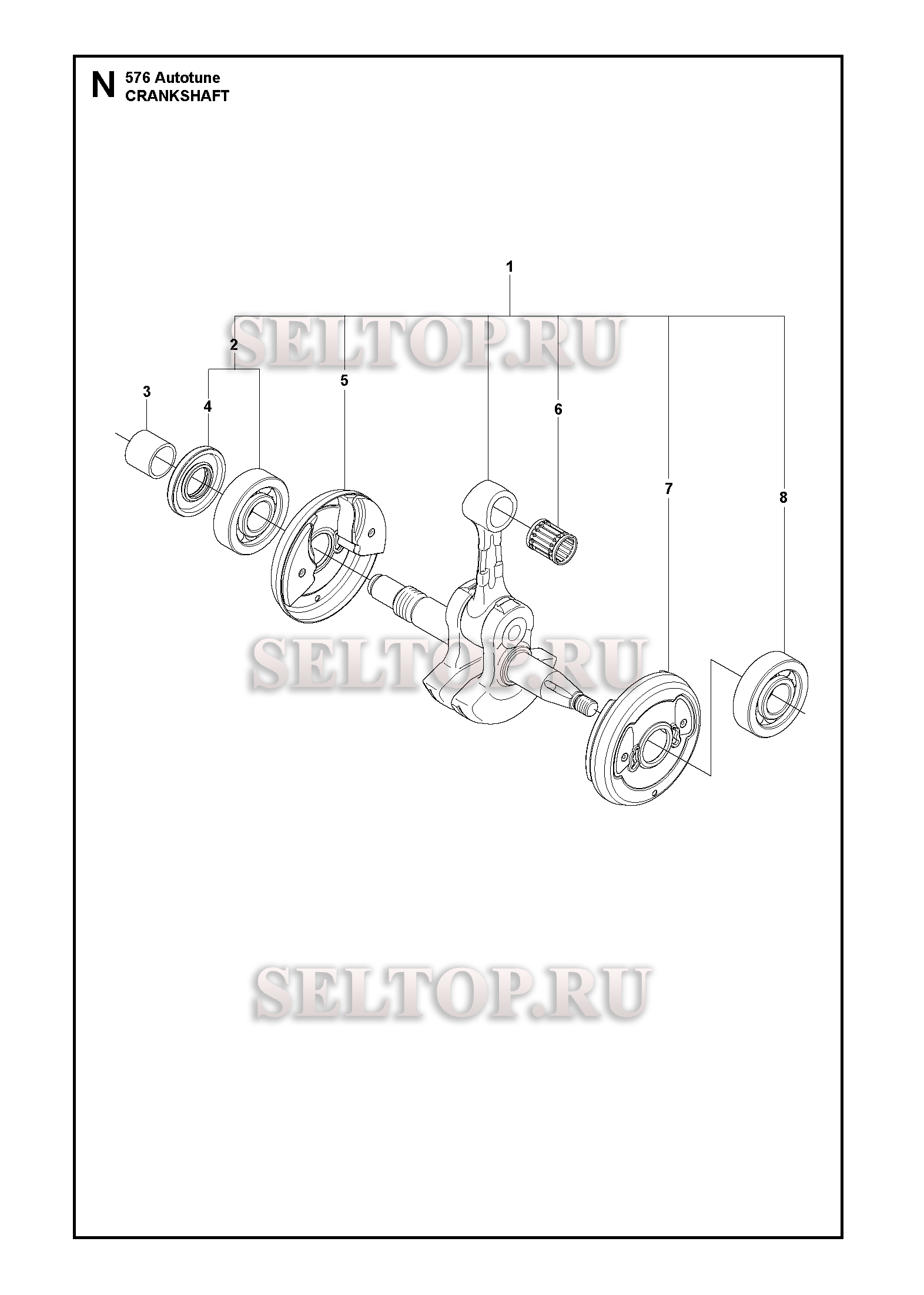 Коленвал для бензопилы Husqvarna 576 XP AUTOTUNE (с 2017-06), взрыв-схема:
