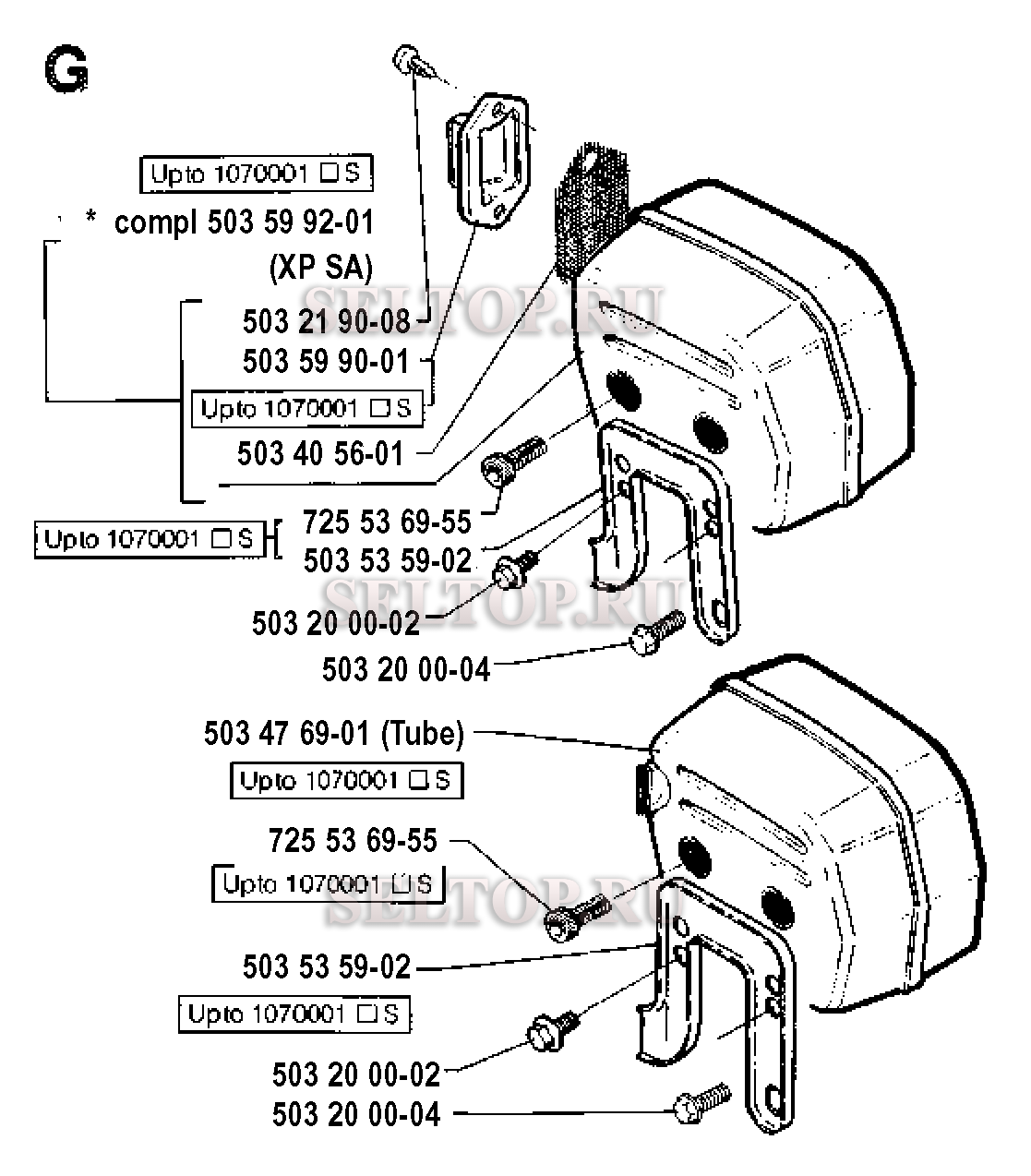 Глушитель для бензопилы Husqvarna 61 (с 1991-03), взрыв-схема: