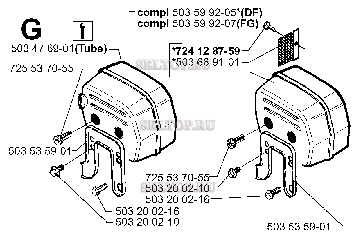 Глушитель для бензопилы Husqvarna 61 (с 1999-08), взрыв-схема: