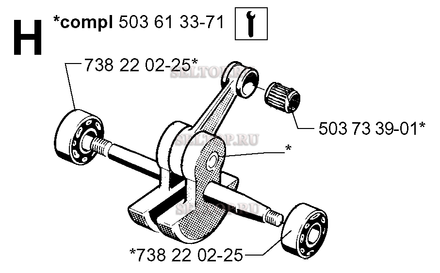 Коленвал для бензопилы Husqvarna 61 (с 1999-08), взрыв-схема: