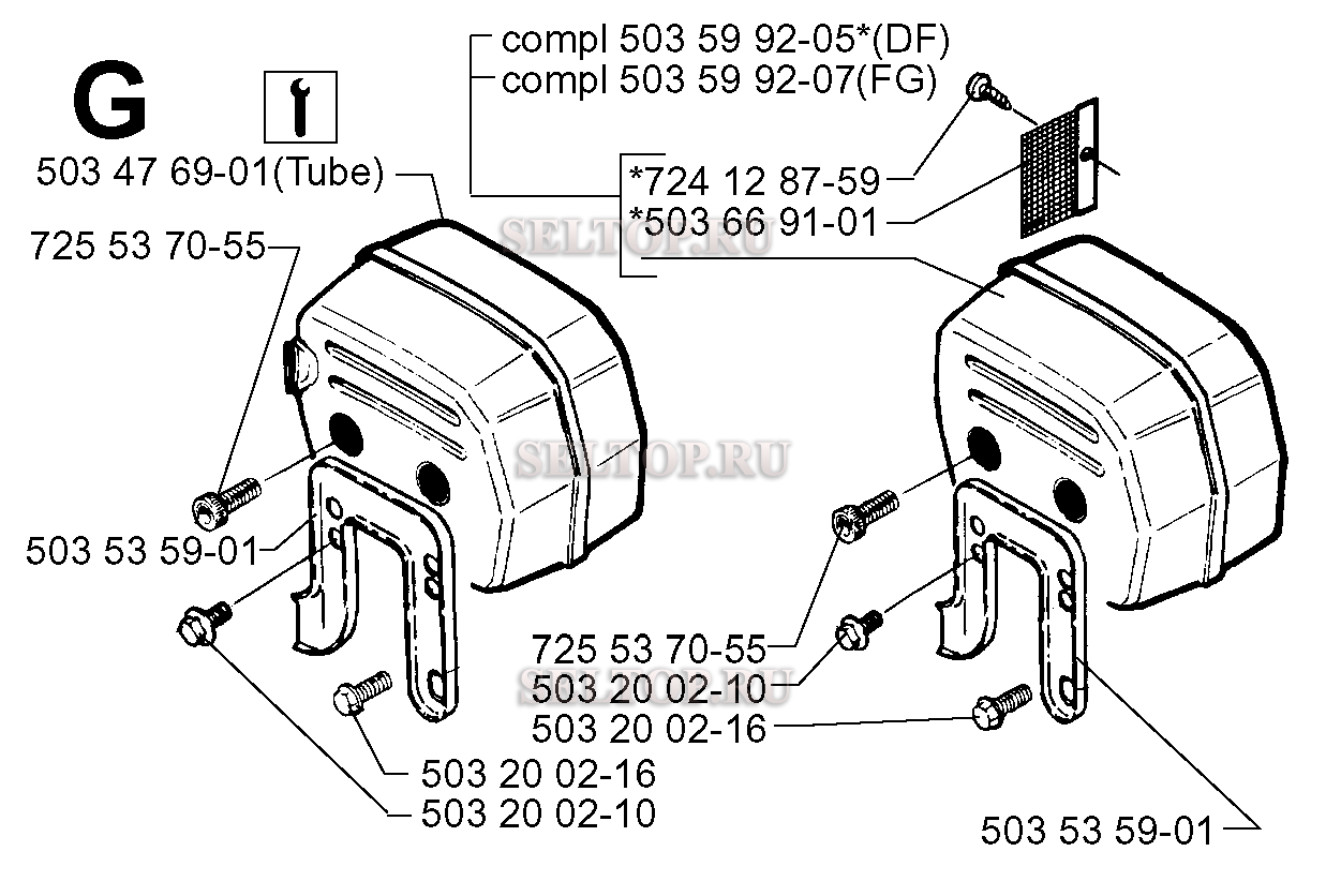 Глушитель для бензопилы Husqvarna 61 (с 2001-10), взрыв-схема: