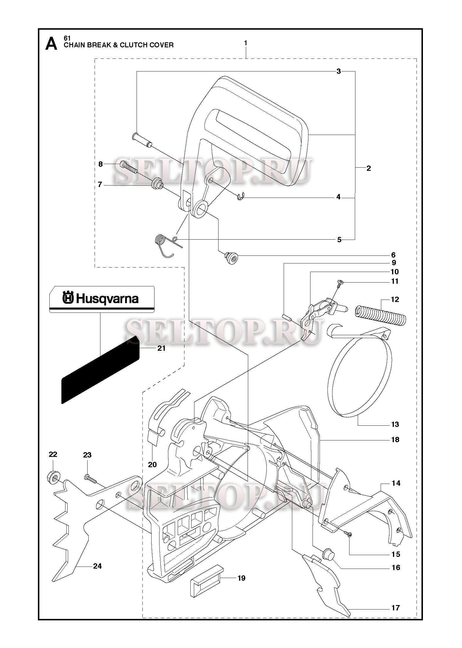 Тормоз цепи, крышка сцепления для бензопилы Husqvarna 61 (с 2011-01)