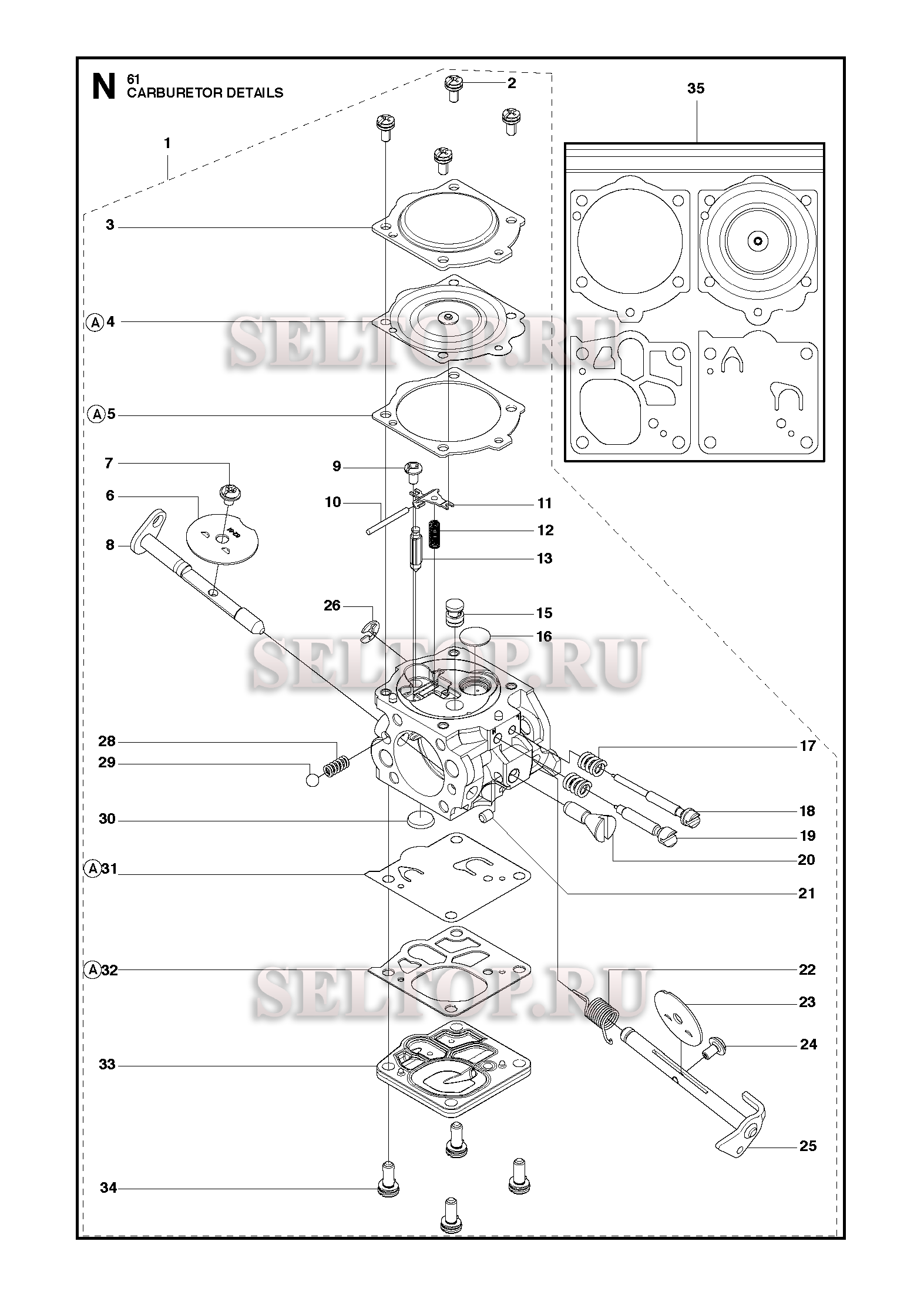 Запчасти карбюратора для бензопилы Husqvarna 61 (с 2016-07)