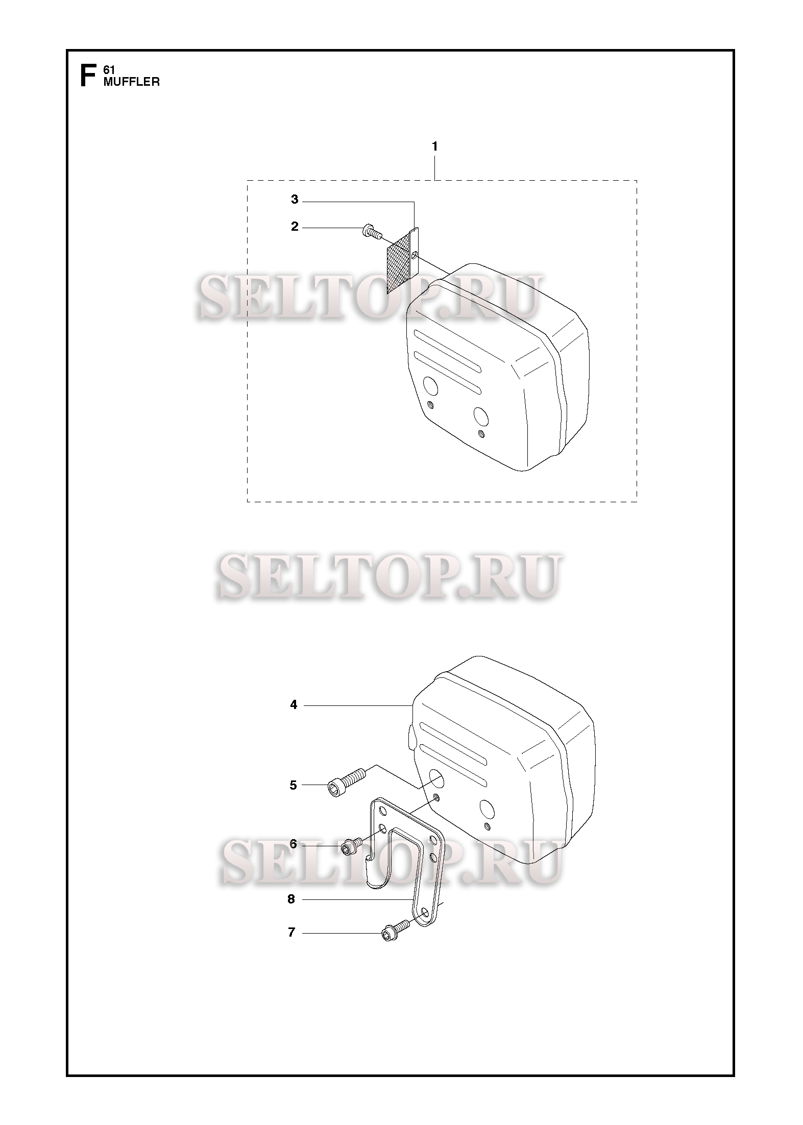 Глушитель для бензопилы Husqvarna 61 (с 2018-06), взрыв-схема: