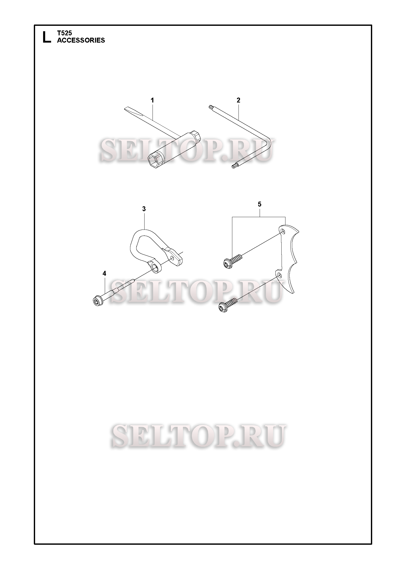 Аксессуары для бензопилы Husqvarna T525 артикул 967633310 (с 2017-12), взрыв-схема: