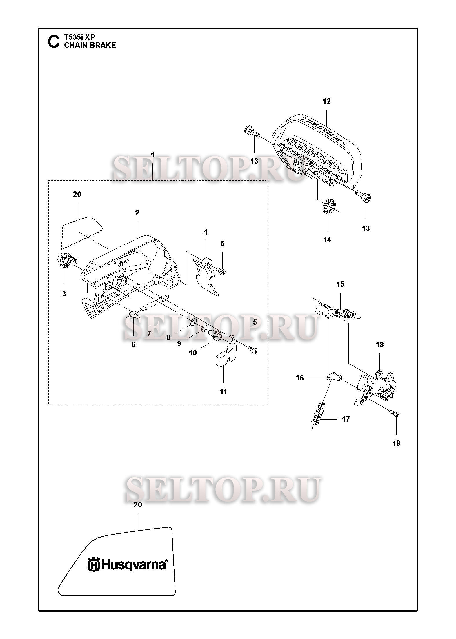 Тормоз цепи для бензопилы Husqvarna T 535 i XP, взрыв-схема: