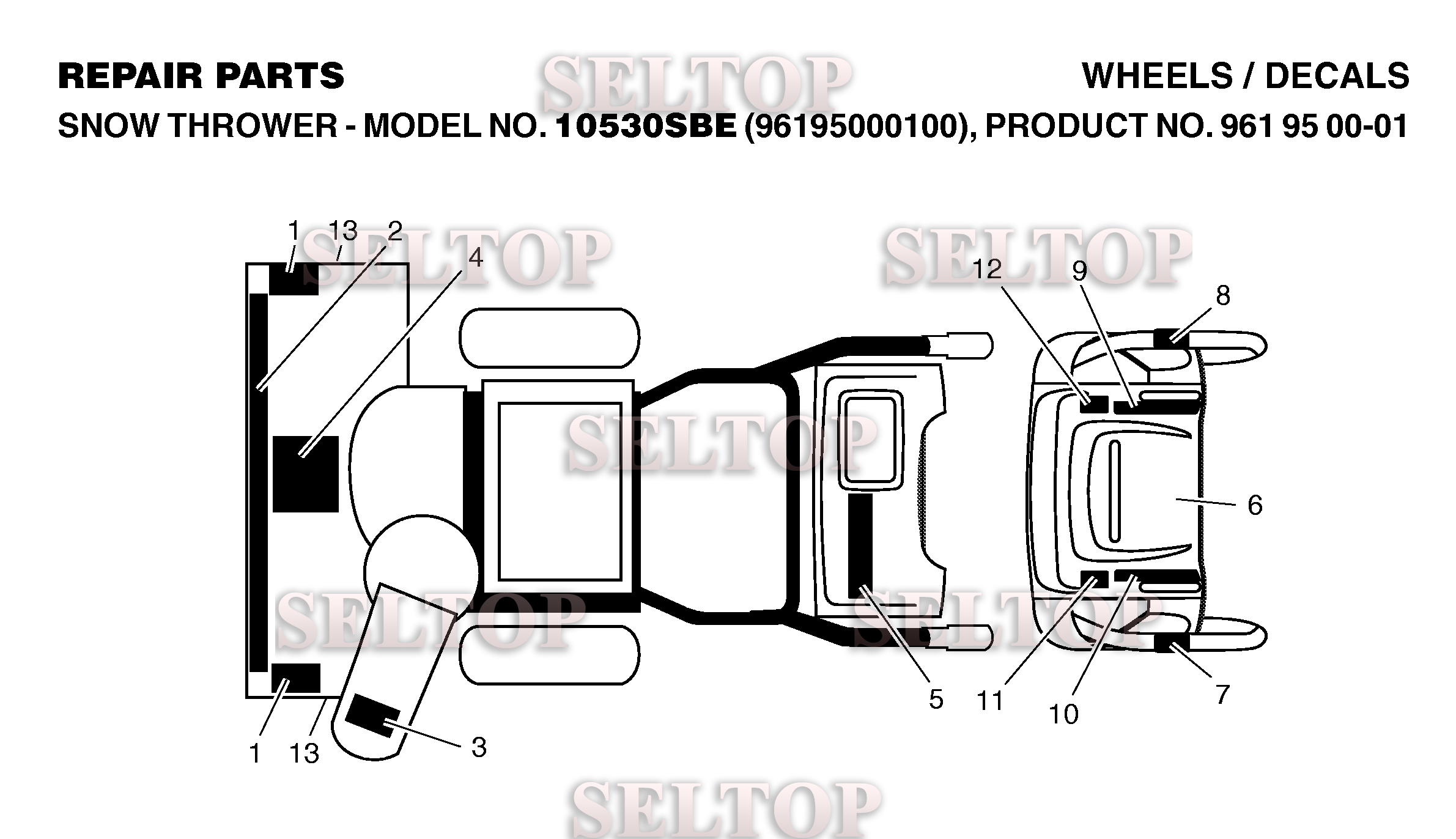 Наклейки для Хускварна 10530 SBE (артикул модели 96195000100) (с 2006-06), взрыв-схема: