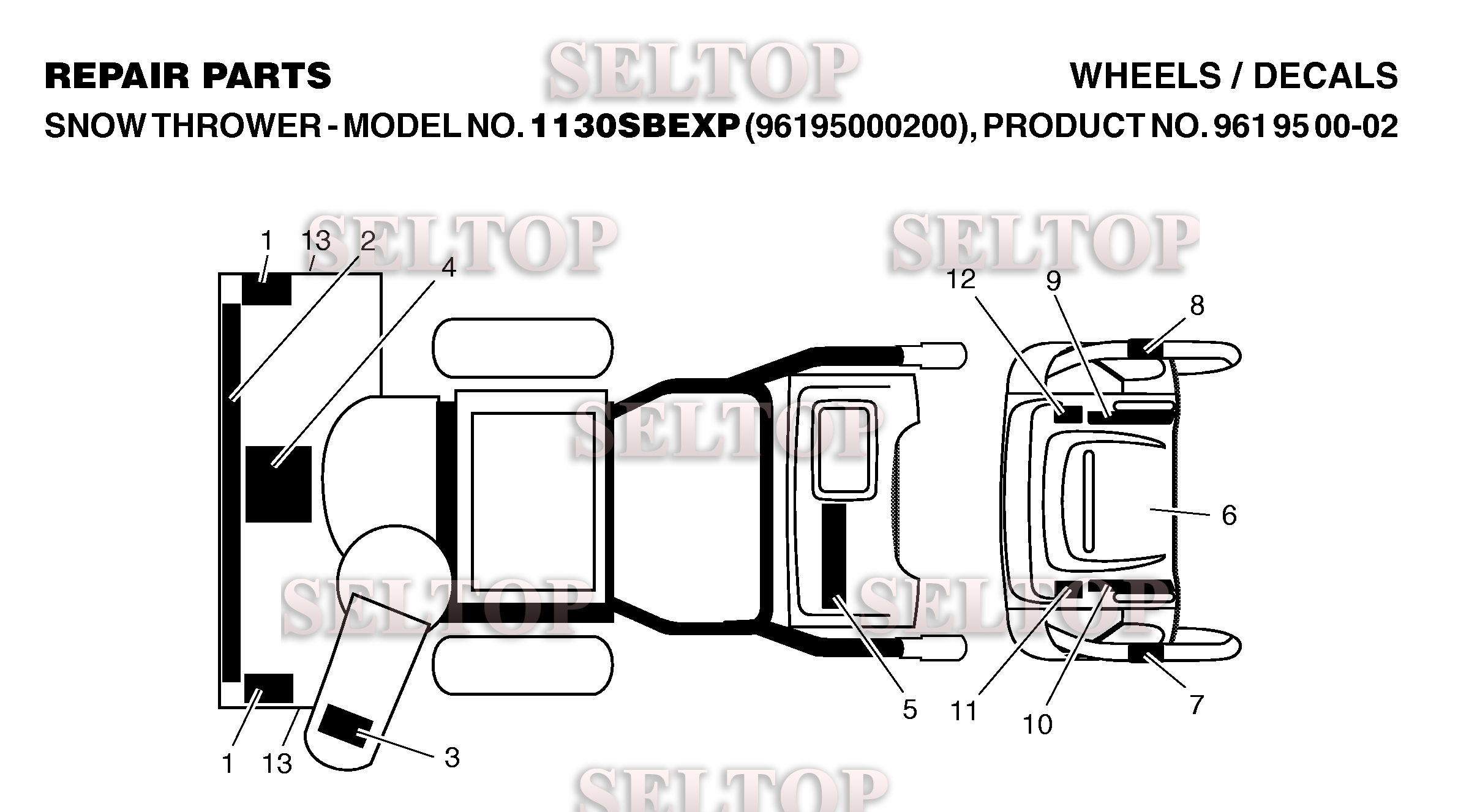 Наклейки для Хускварна 1130 SBEXP (артикул модели 96195000200) (с 2006-06), взрыв-схема:
