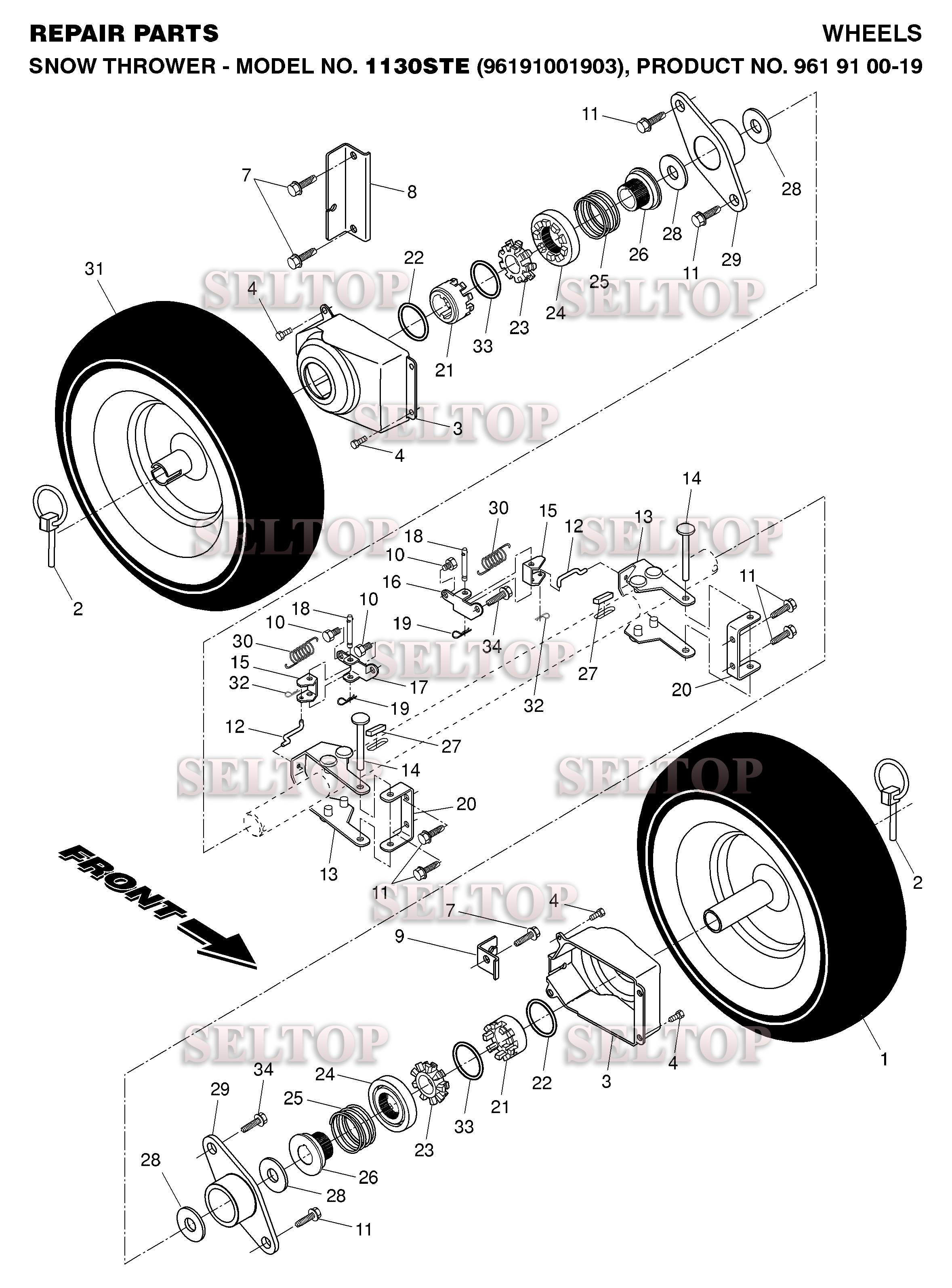 Колеса для Хускварна 1130 STE (артикул модели 96191001903) (с 2007-10), взрыв-схема: