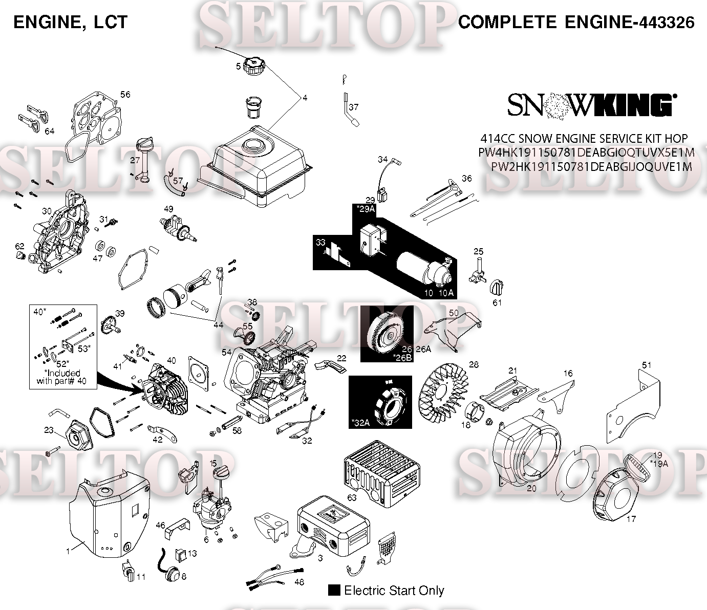 Запчасти двигателя 443326 (для США и Канады) для Хускварна 1827 EXLT (артикул модели 96193007700) (с 2011-08)