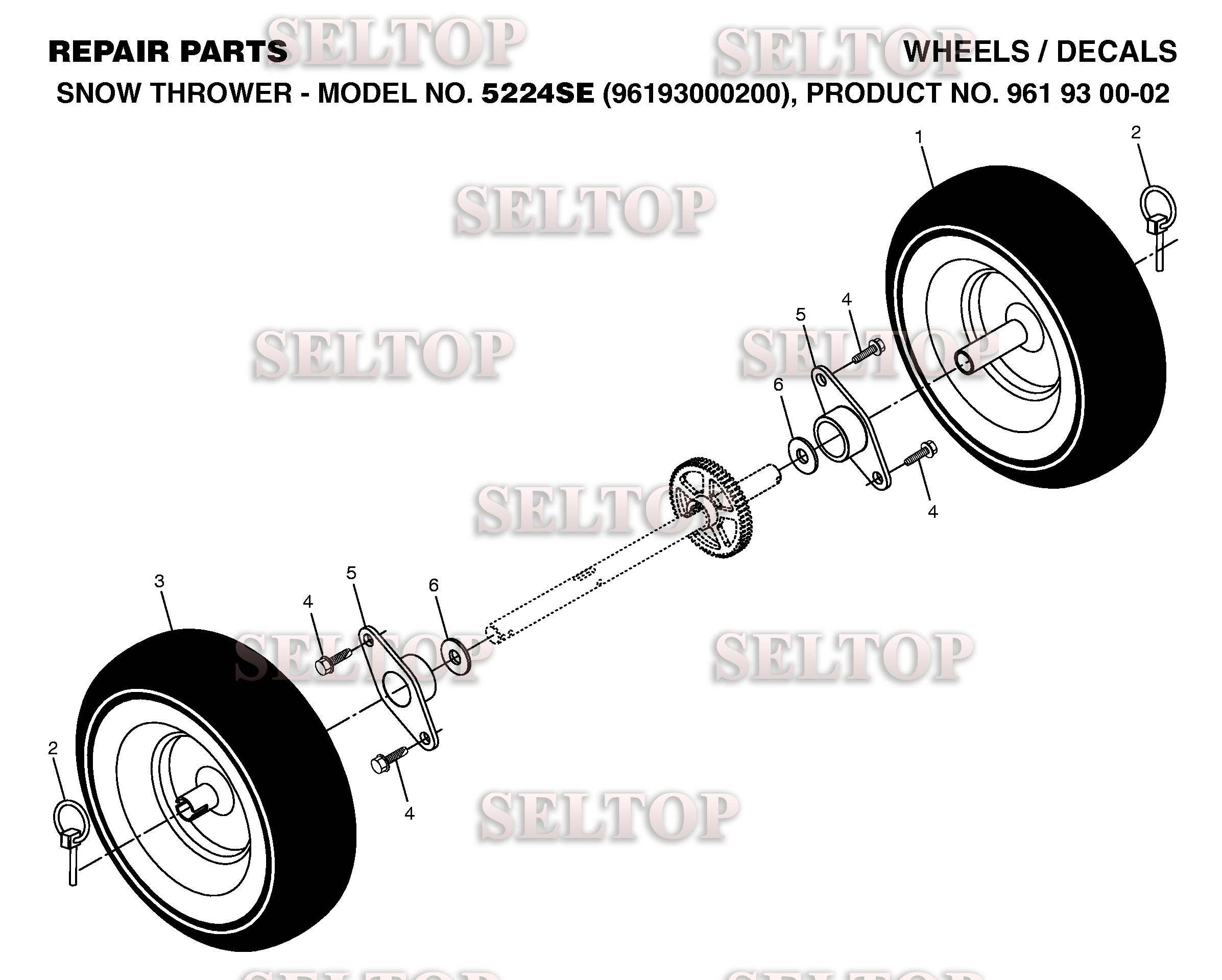 Колеса для Хускварна 5524 SE (артикул модели 96193000200) (с 2006-05), взрыв-схема: