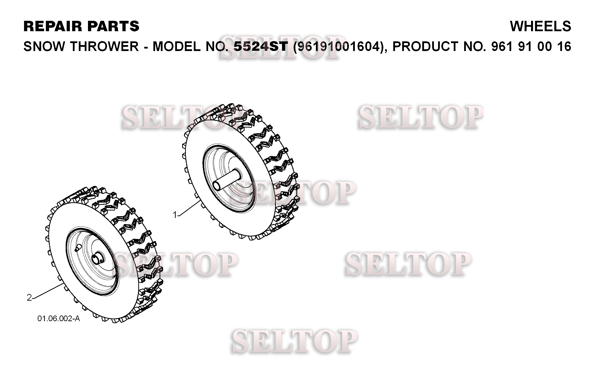 Колеса для Хускварна 5524 ST (артикул модели 96191001604) (с 2008-08), взрыв-схема: