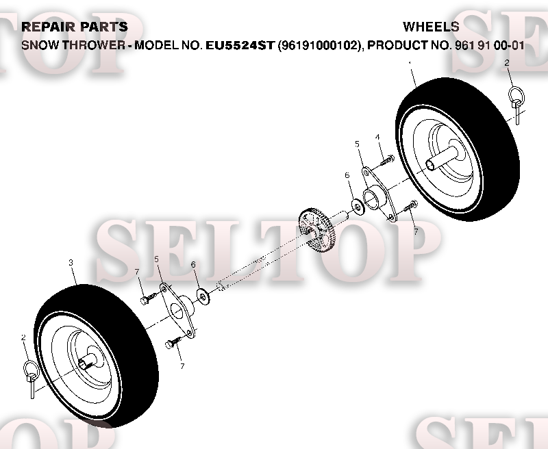 Колеса для Хускварна 5524 ST (артикул модели EU96191000102) (с 2007-01), взрыв-схема: