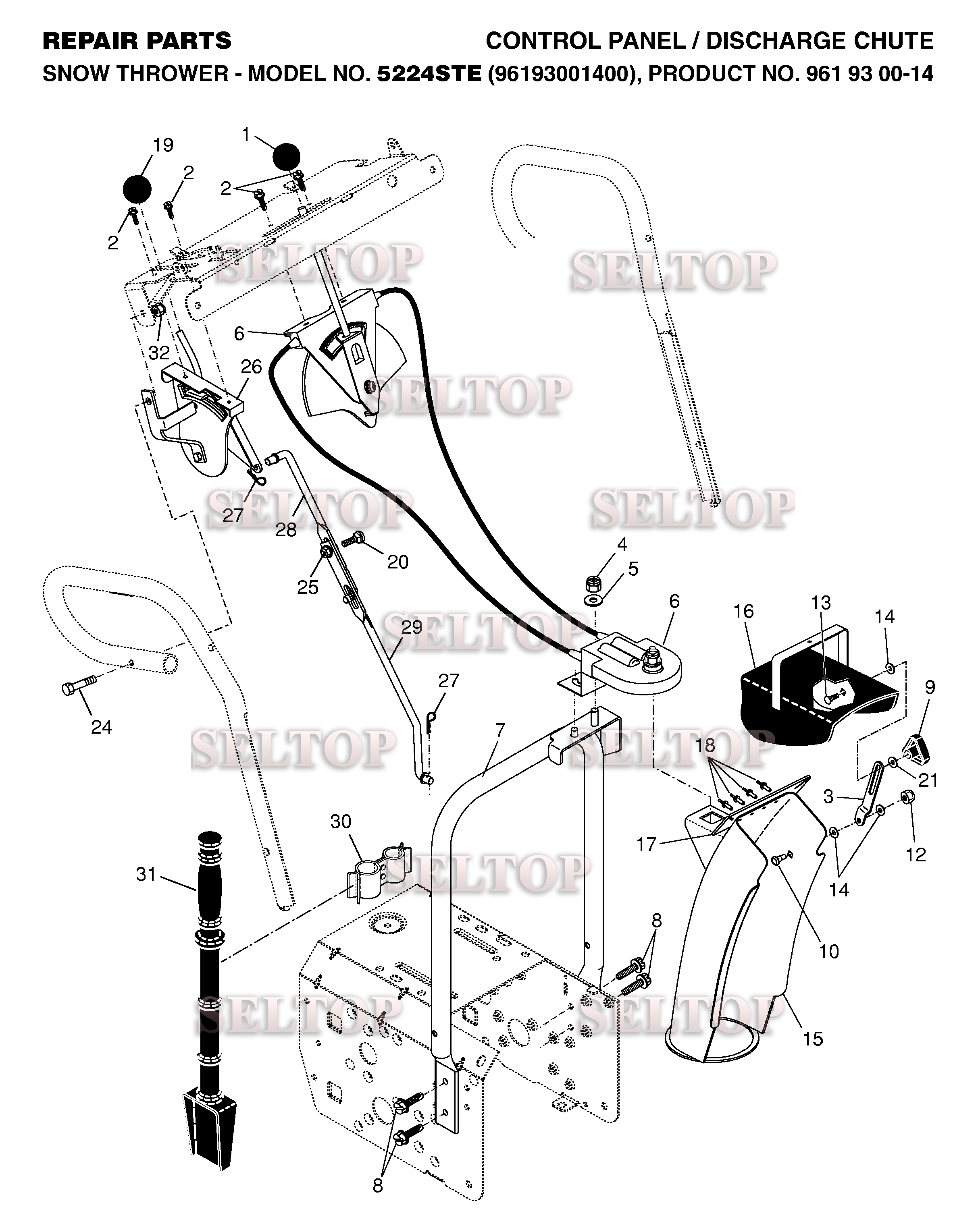 Панель управления, привод разгрузочного желоба для Хускварна 5524 STE (артикул модели 96193001400) (с 2006-08), взрыв-схема: