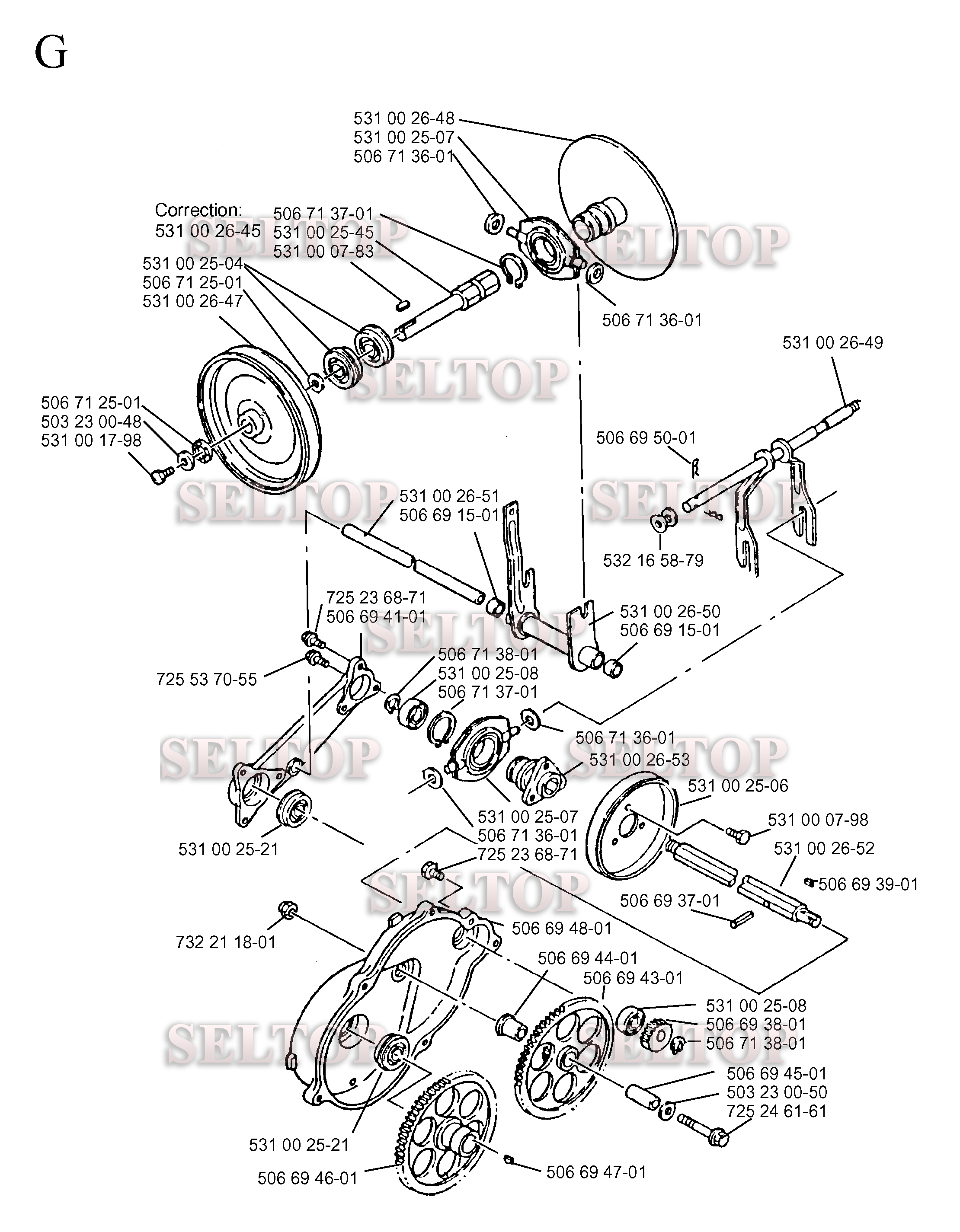 Трансмиссия привода для Хускварна 7-23 (с 1999-02), взрыв-схема: