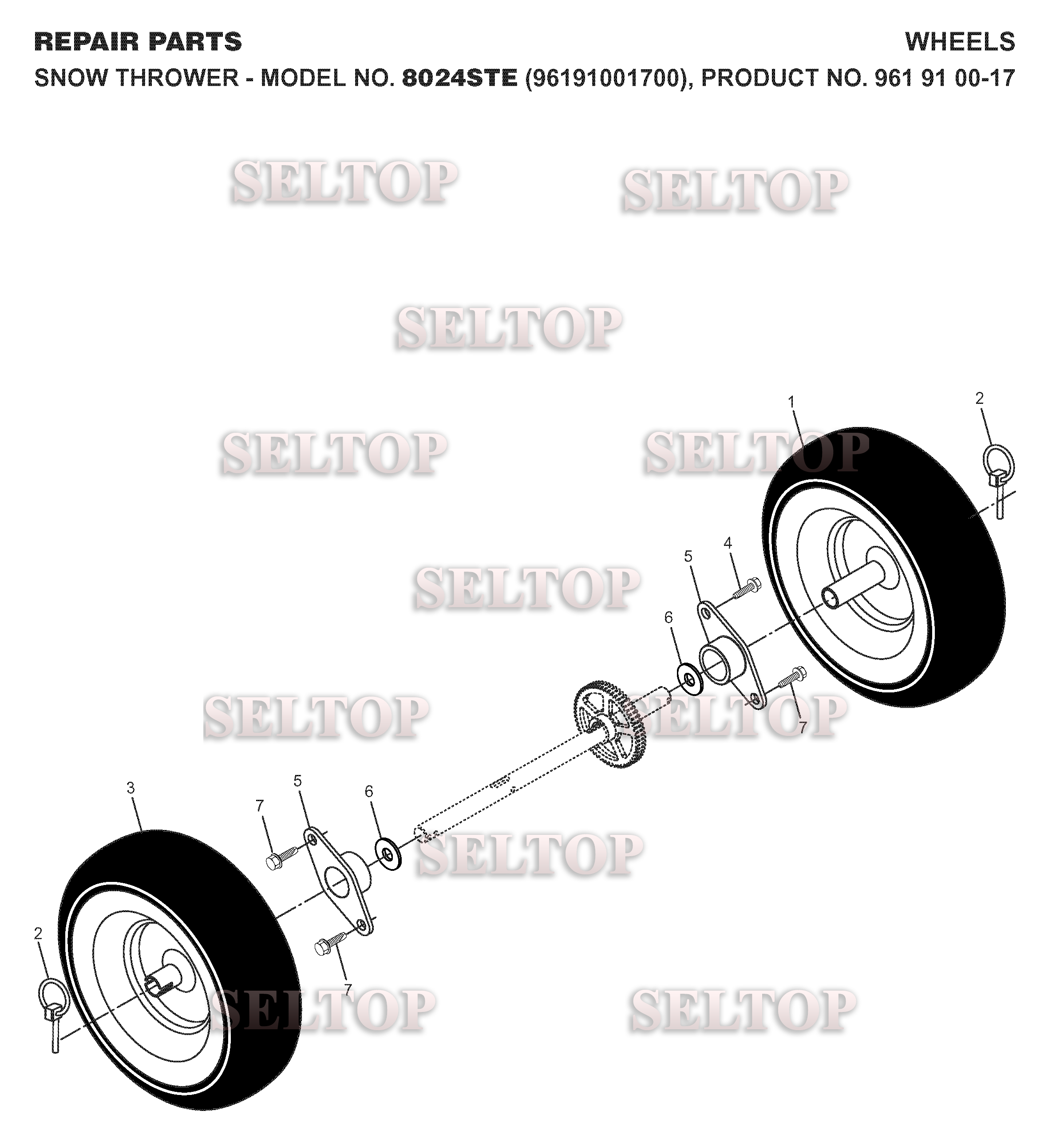 Колеса для Хускварна 8024 STE (артикул модели 961910017) (с 2007-07), взрыв-схема: