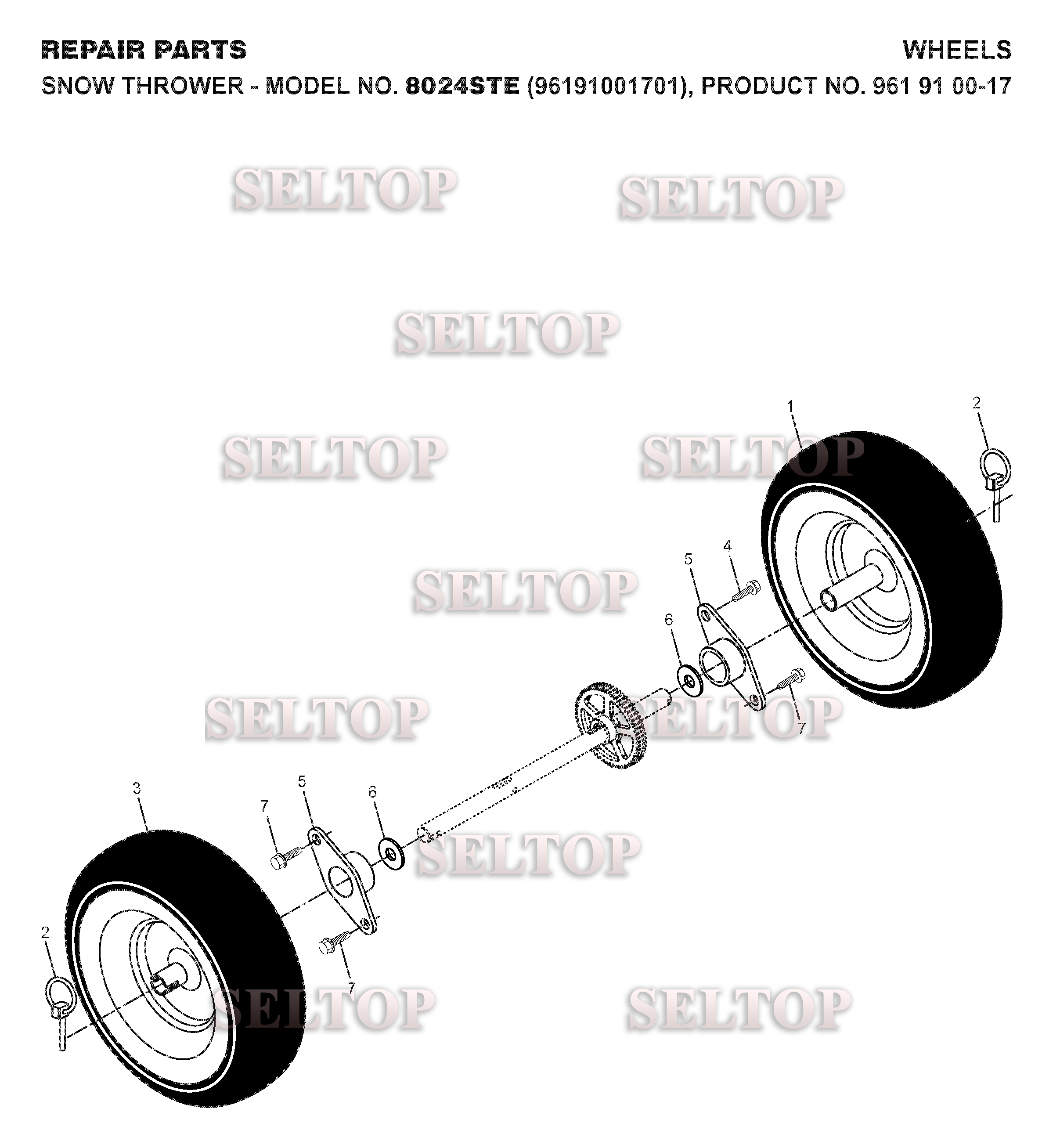 Колеса для Хускварна 8024 STE (артикул модели 96191001701) (с 2007-10), взрыв-схема: