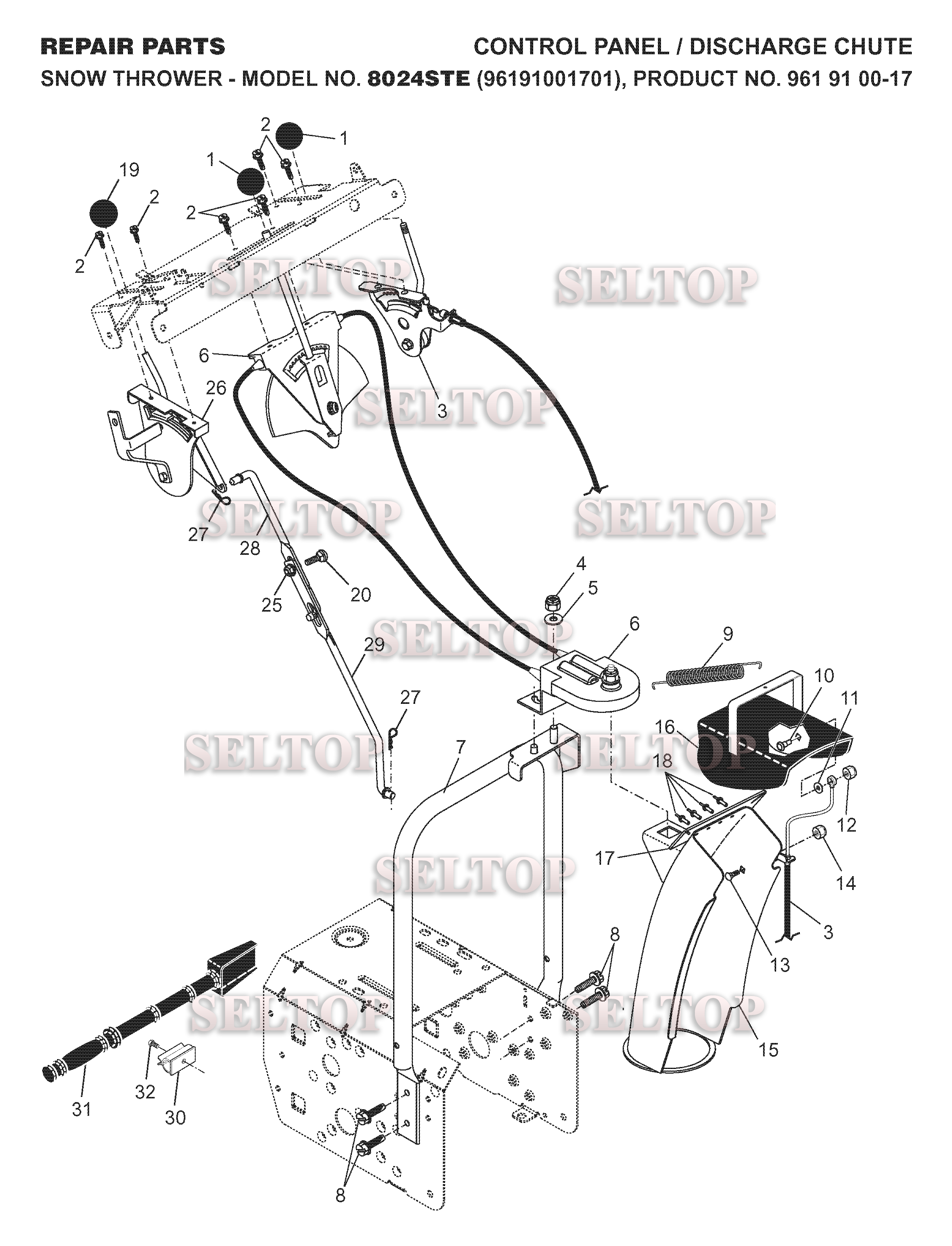 Панель управления, привод разгрузочного желоба для Хускварна 8024 STE (артикул модели 96191001701) (с 2007-10), взрыв-схема: