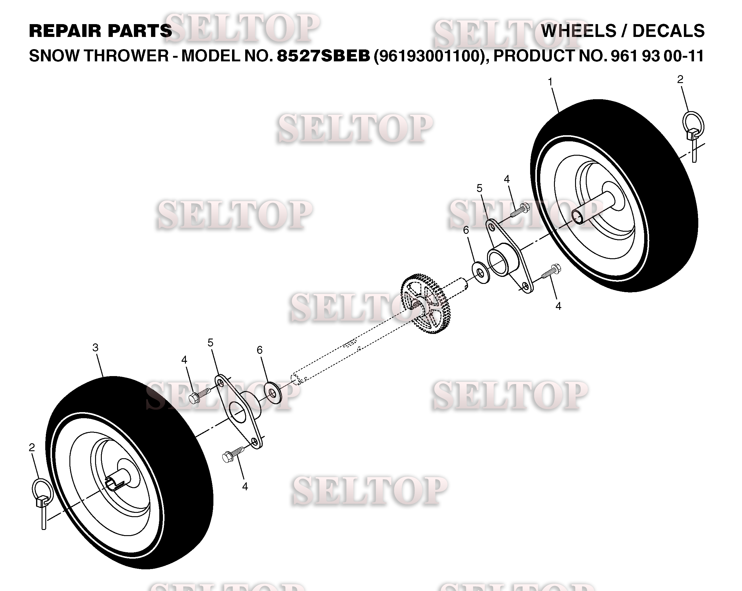 Колеса для Хускварна 8527 SBEB (артикул модели 961930011) (с 2005-12), взрыв-схема: