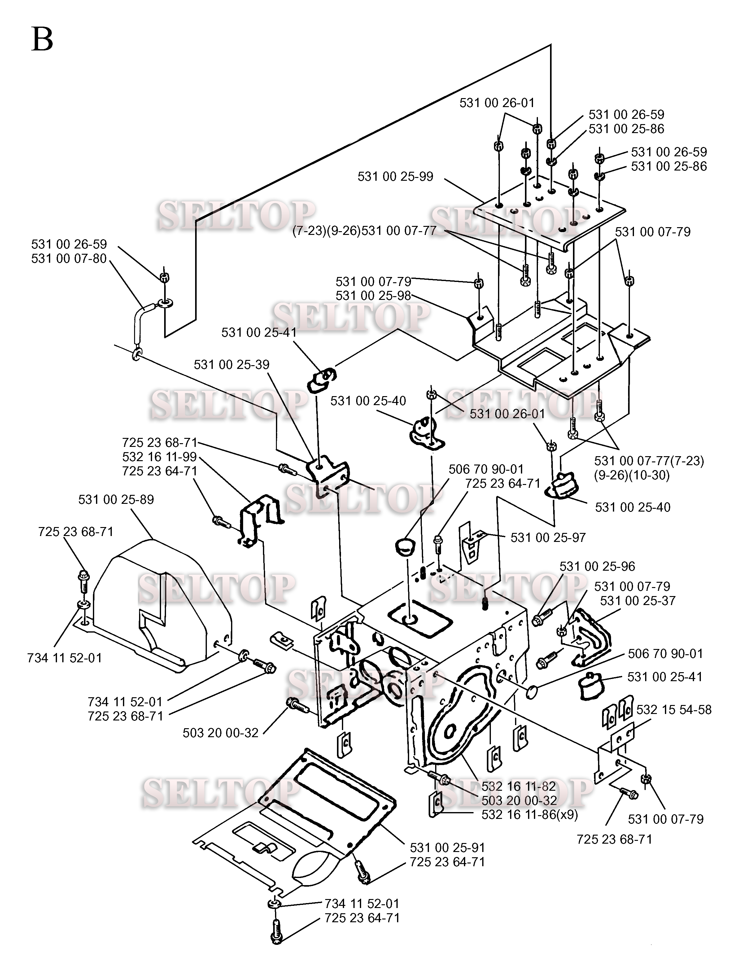 Шасси, рама для Хускварна 9-26 (с 1998-09) (схема 4), взрыв-схема: