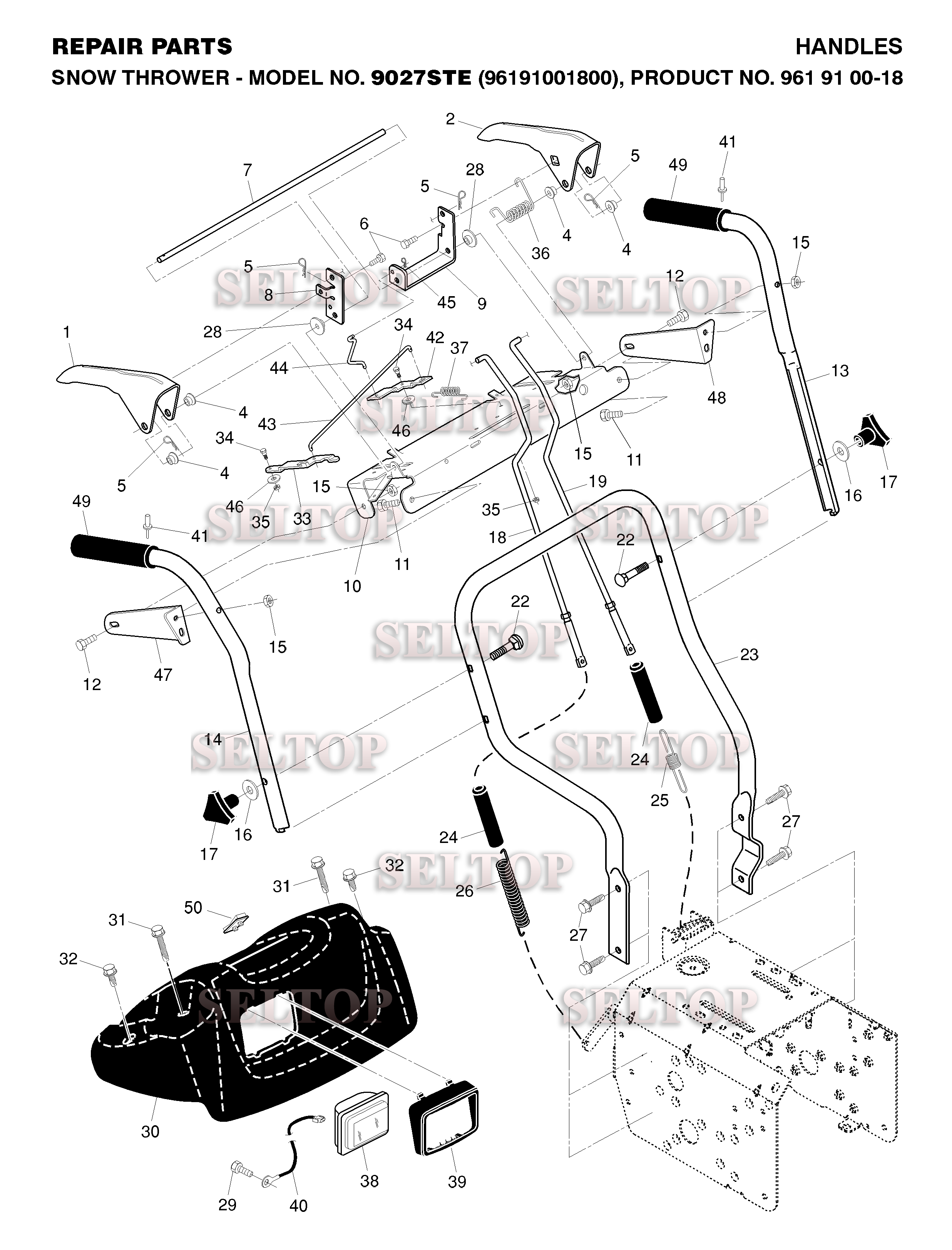 Ручки управления для Хускварна 9027 STE (артикул модели 96191001800) (с 2007-07), взрыв-схема: