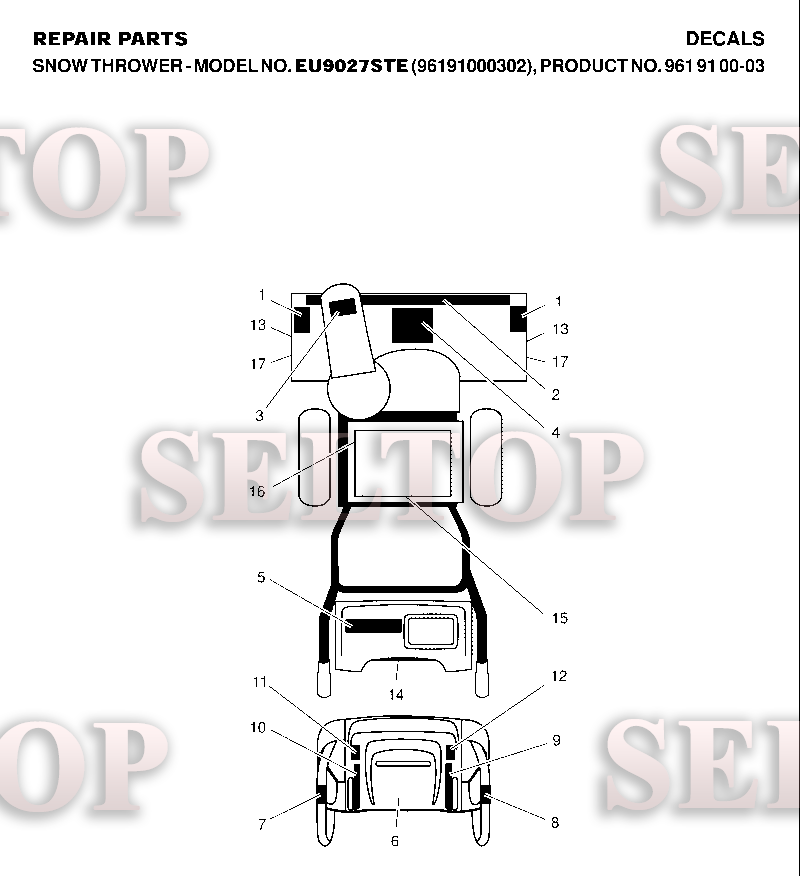 Наклейки для Хускварна EU9027STE (артикул модели 96191000302) (с 2007-01), взрыв-схема: