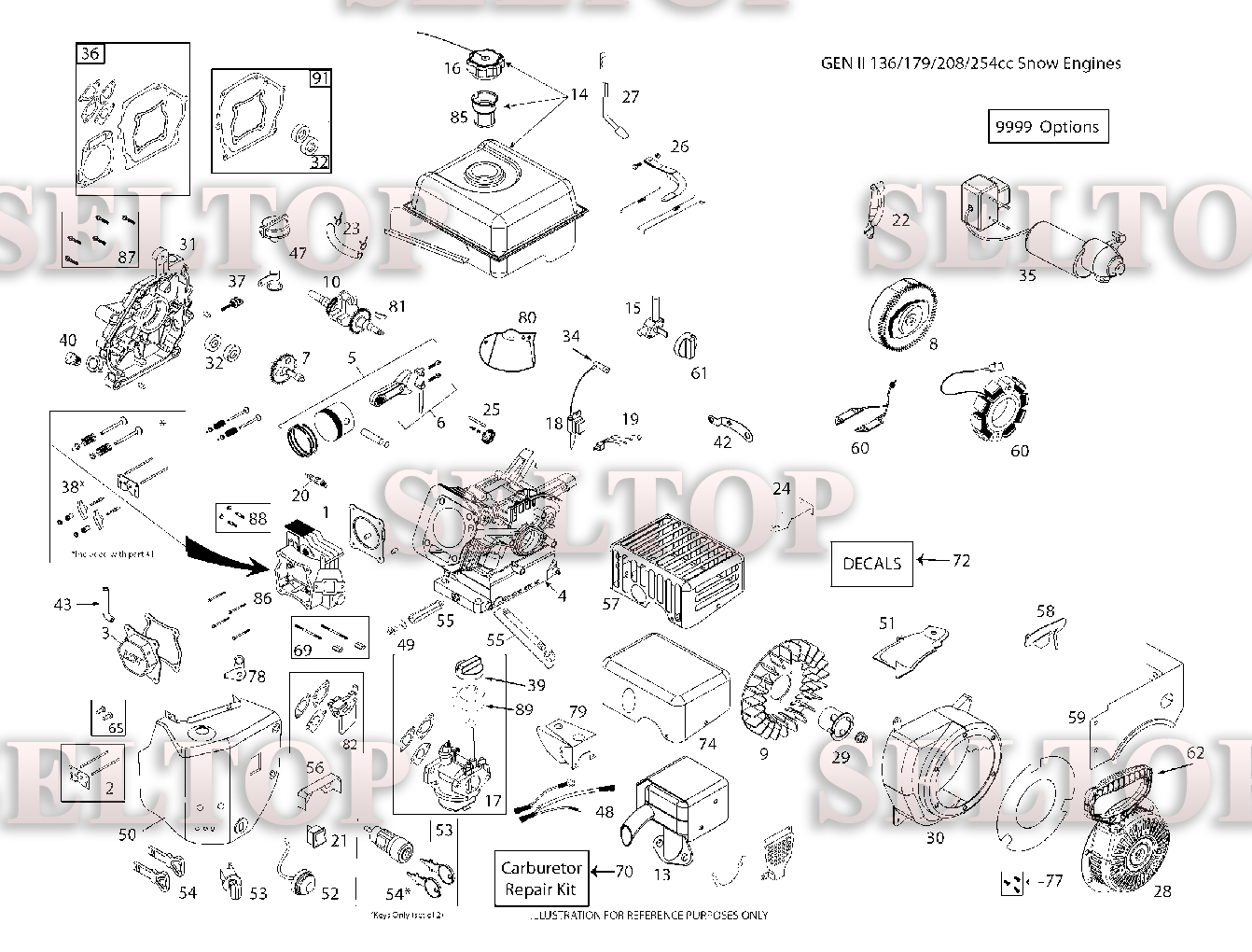 Двигатель для Хускварна ST 224 (артикул модели 96191008700) (с 2014-06), взрыв-схема: