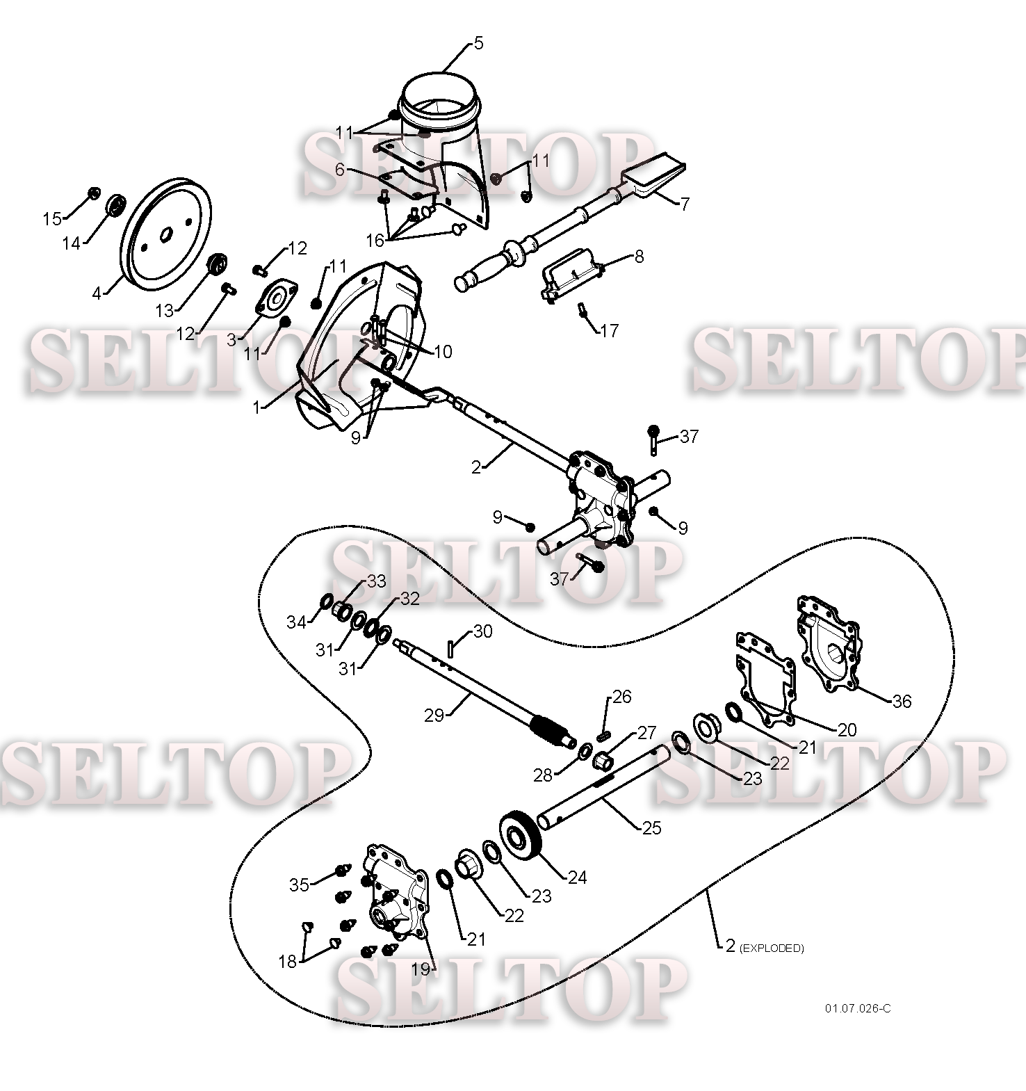 Крыльчатка, редуктор для Хускварна ST 276EP (артикул модели 96191003200) (с 2009-08), взрыв-схема: